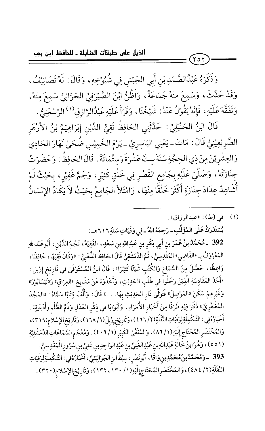 قَالَ الحافظ: وحضرت جنازته وصلَّى عَلَيْهِ بجامع القصر فِي خلق كثير، وجَم غفير، بحيث لَمْ أشاهد عداد جنازة أَكْثَر خلقا منها. وامتلأ الجامع. بحيث لا يكاد الإِنْسَان