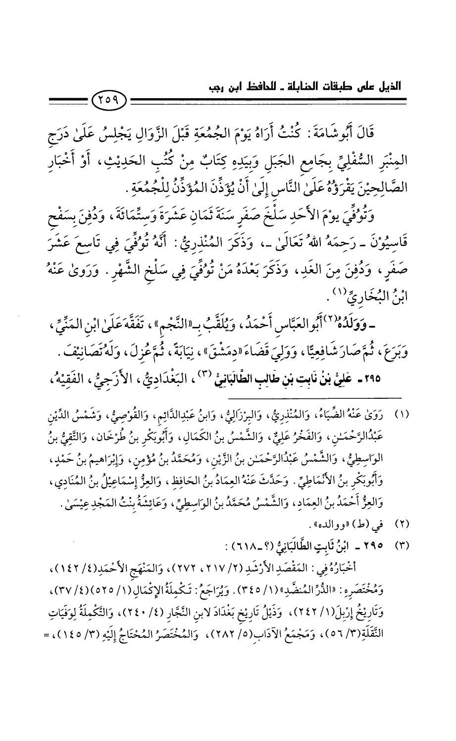 وَرَوَى عَنْهُ ابْن الْبُخَارِي، ووالده أَبُو الْعَبَّاس أَحْمَد. ويلقب بالنجم. تفقه عَلَى ابْن المنى، وبرع، ثُمَّ صار شافعيا، وولي قضاء دمشق نيابة، ثُمَّ عزل. وَلَهُ تصانيف.