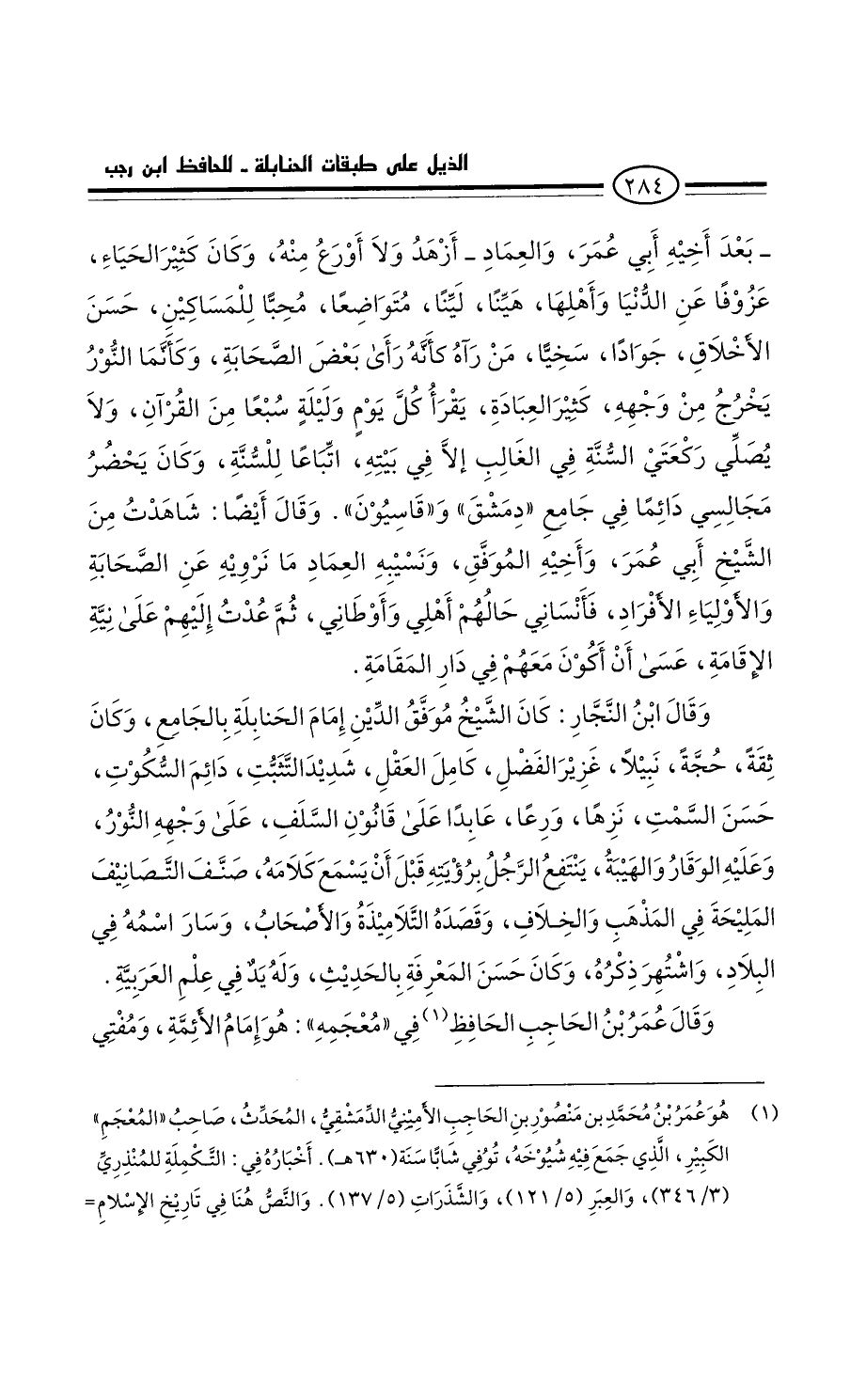 وَقَالَ عُمَر بْن الحاجب الحافظ فِي معجمه: هُوَ إمام الأئمة، ومفتي
