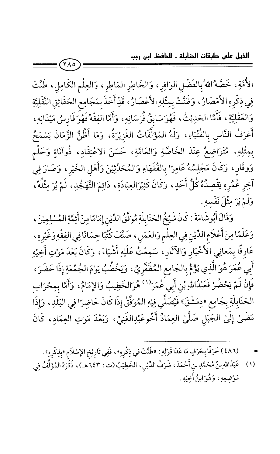 كتاب ذيل طبقات الحنابلة - لابن رجب - ت العثيمين (اسم الجزء: 3)
