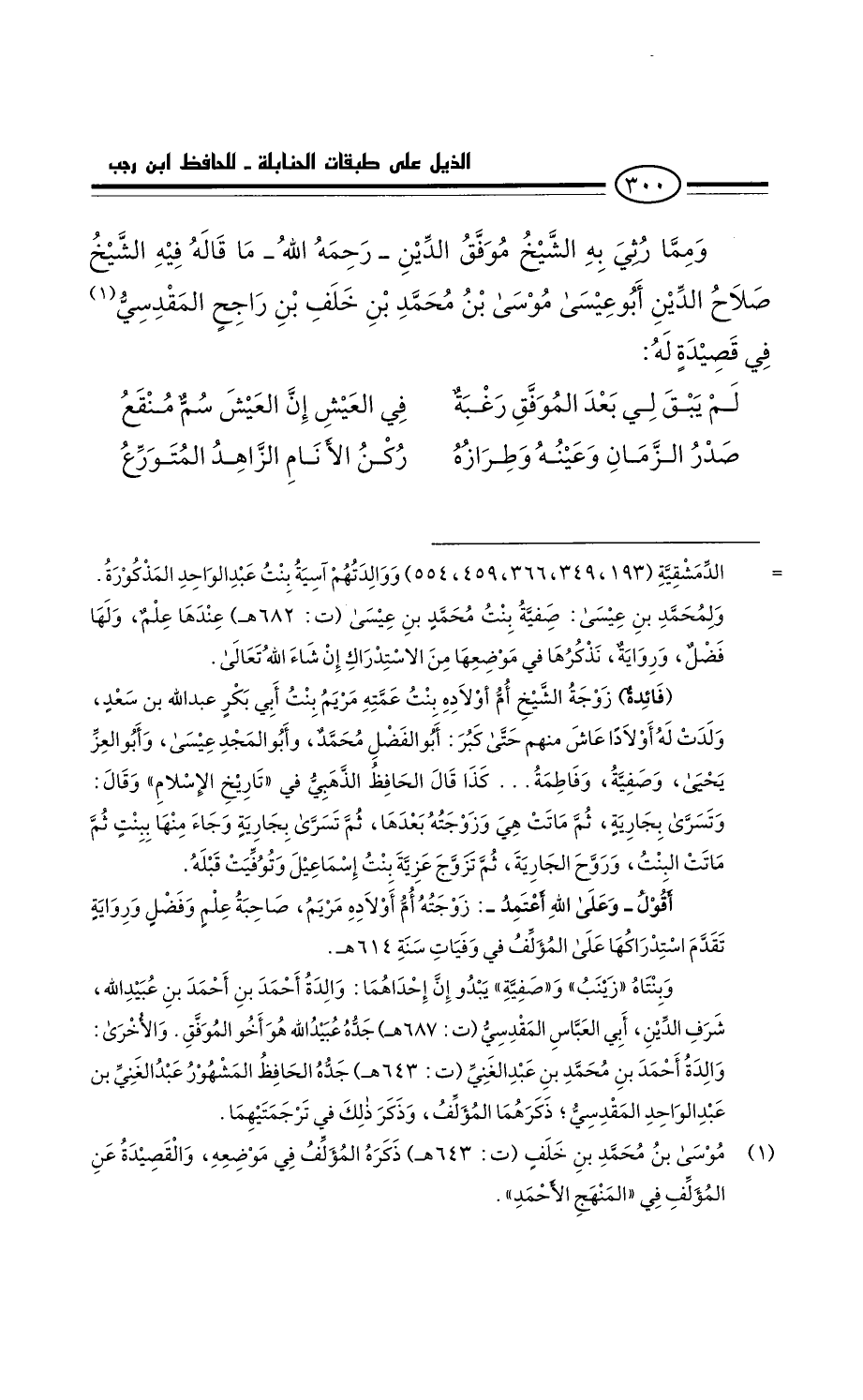 ومما رثى بِهِ الشيخ موفق الدين رحمه اللَّه مَا قاله فِيهِ الشيخ صلاح الدين أَبُو عيسى موسى بْن مُحَمَّد بْن خلف بْن راجح المقدسي فِي قصيدة لَهُ: