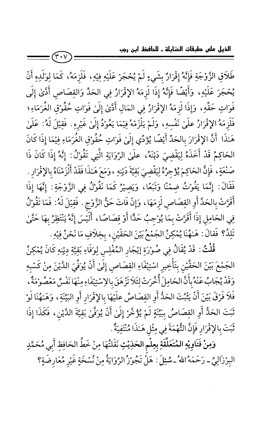 فقيل لَهُ: عَلَى هَذَا: أَن الإقرار بالحد أَيْضًا يؤدي إِلَى فوات حقوق الغرماء فيما كَانَ الحاكم قَدْ أخذه ليقضي دينه، عَلَى الرواية الَّتِي تقول: إنه إِذَا كَانَ ذا صنعة، فَإِن الحاكم يؤجره ليقضي بقية دينه. ومع هَذَا فَقَدْ ألزمناه بالإقرار.