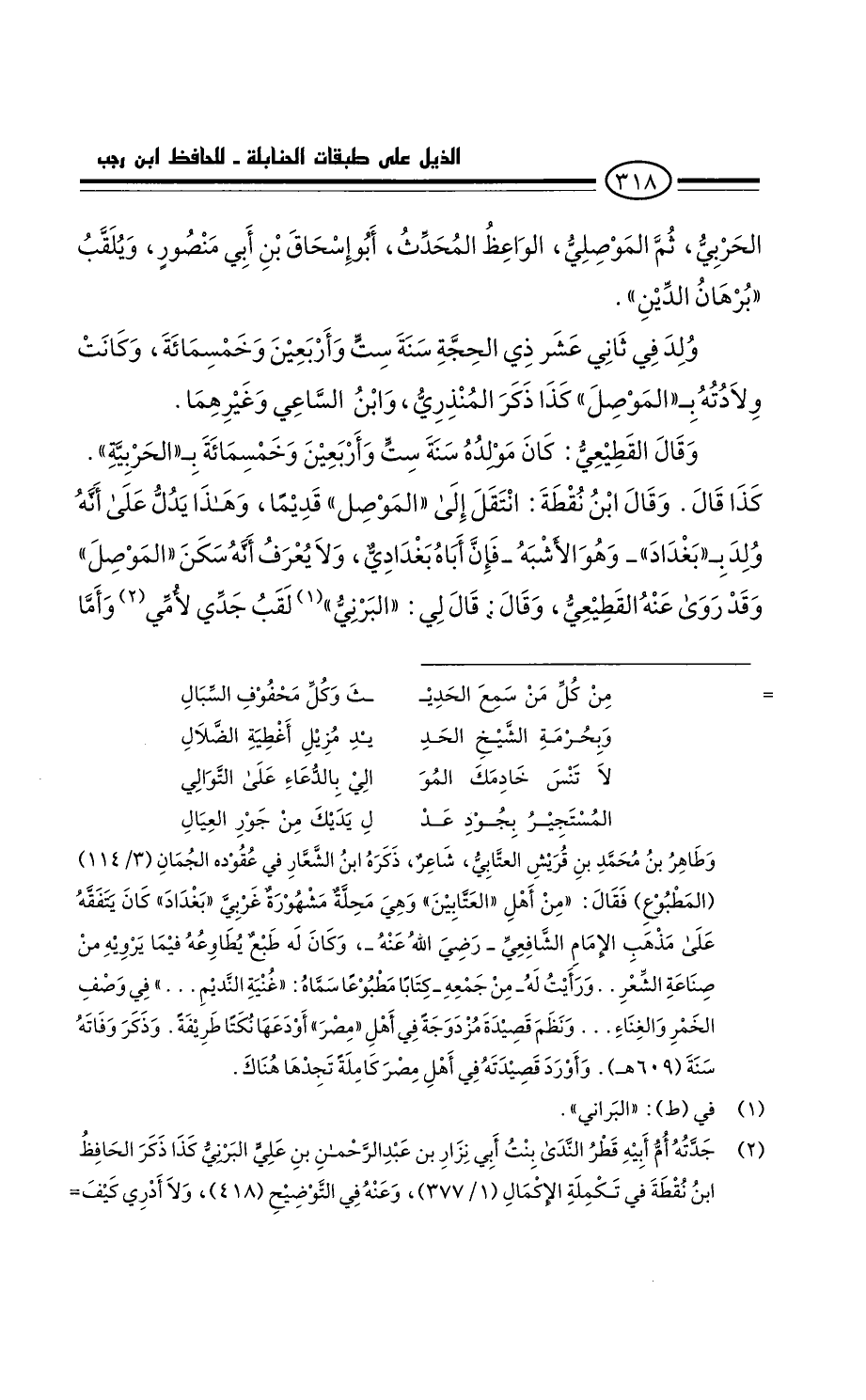 الحربي، ثُمَّ الموصلي، الواعظ المحدث، أَبُو إِسْحَاق بْن أَبِي مَنْصُور وبلقب برهان الدين: ولد فِي ثاني ولد فِي ثاني عشر ذي الحجة سنة ست وأربعين وخمسمائة وكانت ولادته بالموصل. كَذَا ذكر المنذري وابن الساعي وغيرهما.