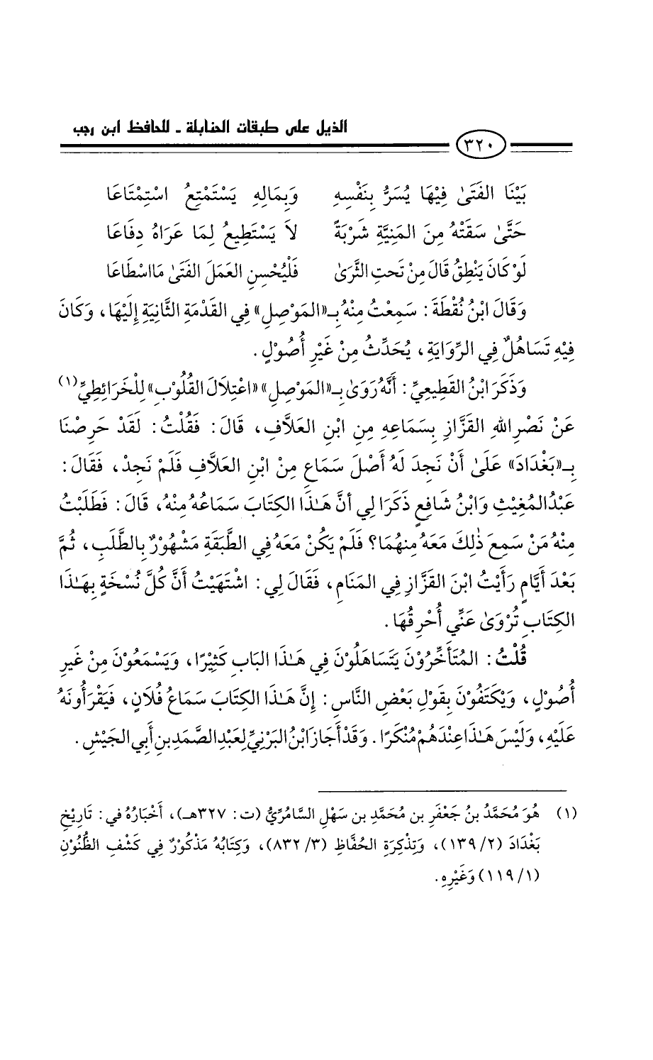 قُلْت: المتأخرون يتساهلون فِي هَذَا الباب كثيرا، ويسمعون من غير أصل؟ ويكتفون يقول بَعْض النَّاس: إِن هَذَا الكتاب سماع فُلان، فيقرأونه عَلَيْهِ وليس هَذَا عندهم منكرا. وَقَدْ أجاز ابْن البرني لعبد الصمد بْن أَبِي الجيش.