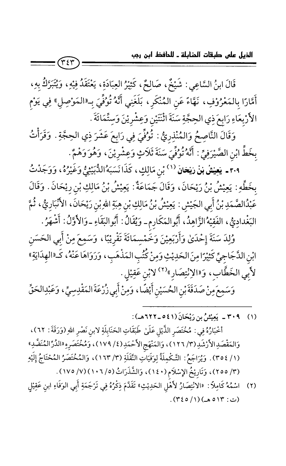 يعيش بْن ريحان بْن مَالِك، كَذَا نسبه الدبيثي وغيره. ووجدت بخطه: يعيش بْن ريحان. وَقَالَ جَمَاعَة: يعيش بْن مَالِك بْن ريحان: وَقَالَ عَبْد الصمد بْن أَبِي الجيش: يعيش بْن مَالِك بْن هبة اللَّه بْن ريحان، الأنباريَ، ثُمَّ البغدادي، الفقيه الزاهد، أَبُو المكارم - ويقال: أَبُو البقاء - وَالأَوَّل: أشهر.