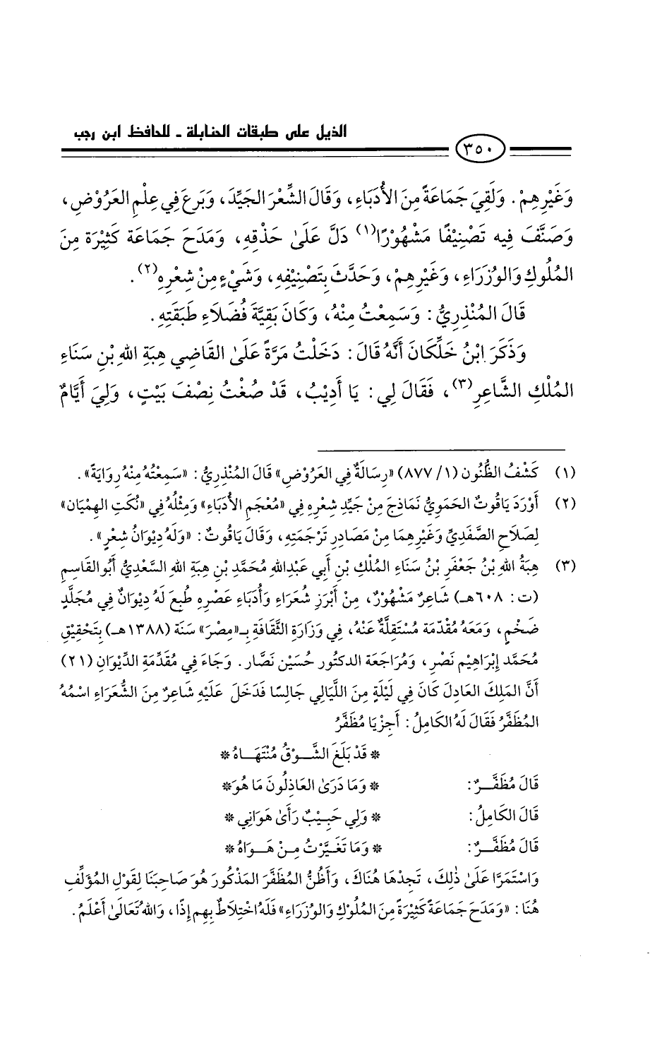 وغيرهم. ولقي جَمَاعَة من الأدباء، وَقَالَ الشعر الجيد، وبرع فِي علم العروض، وصنف فِيهِ تصنيفا مشهوراً. دل على حذفه. ومدح جماعة كثيرة من الملوث والوزراء، وغيرهم. وحدث بتصنيفه، وشي من شعره.