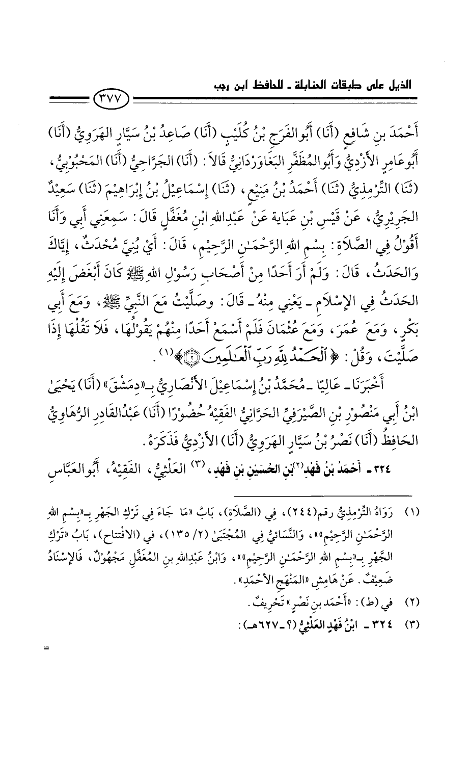 كتاب ذيل طبقات الحنابلة - لابن رجب - ت العثيمين (اسم الجزء: 3)