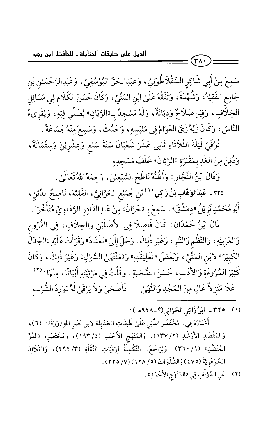عَبْد الْوَهَّاب بْن زاكي بْن جميع الحراني، الفقيه، ناصح الدين، أَبُو مُحَمَّد نزيل دمشق: سمع بحران من عَبْد القادر الرهاوي متأخرا.