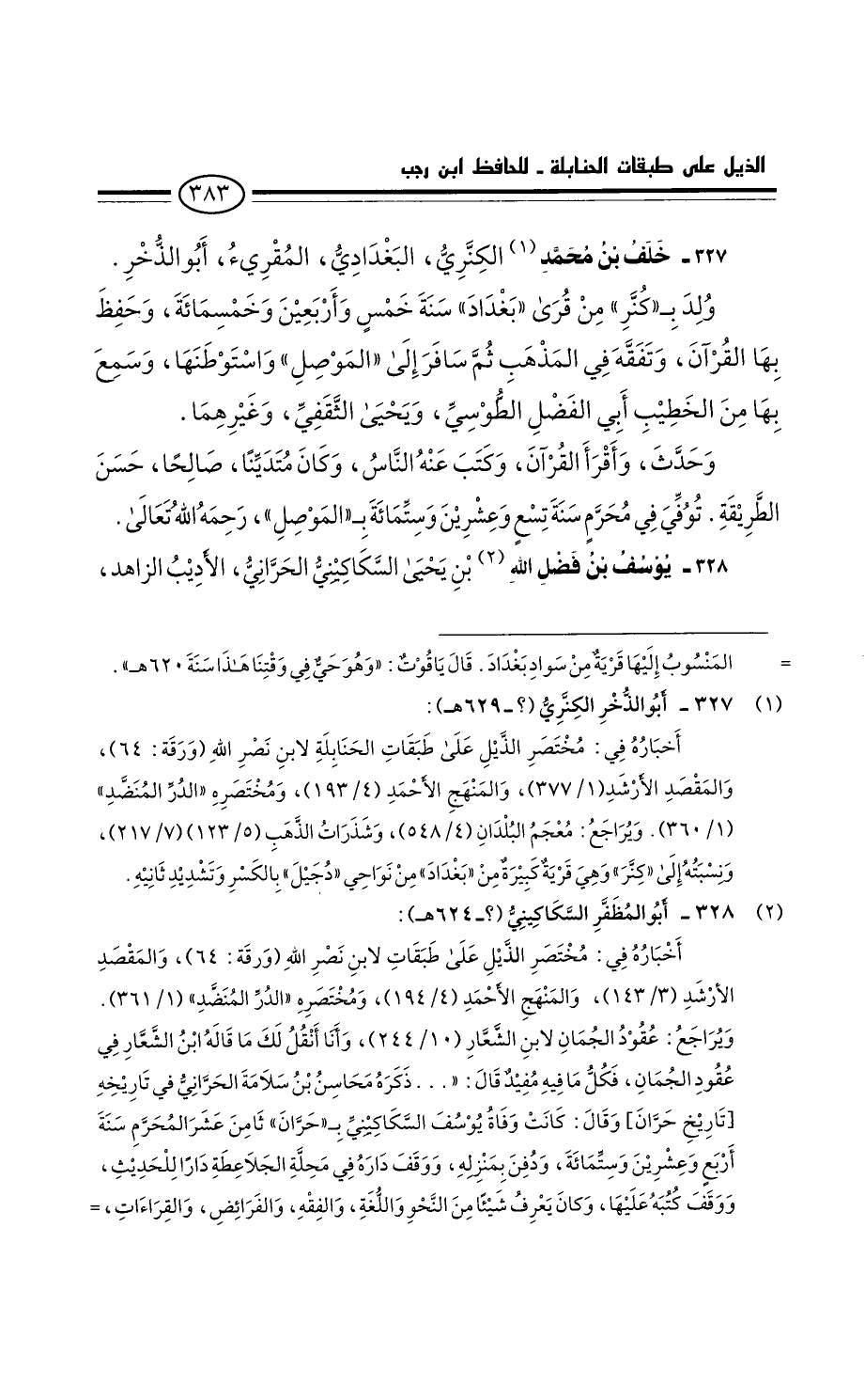 خلف بن محمد بن خلف الكنري، البغدادي، المقرئ، أبو الذخر: ولد يكنز من قرى بغداد، سنة خمس وأربعين وخمسمائة. وحفظ بها القرآن. وتفقه في المذهب ثم سافر إلى الموصل واستوطنها. وسمع بها من الخطيب أَبِي الفضل الطوسي، وَيَحْيَى الثقفي، وغيرهما.
