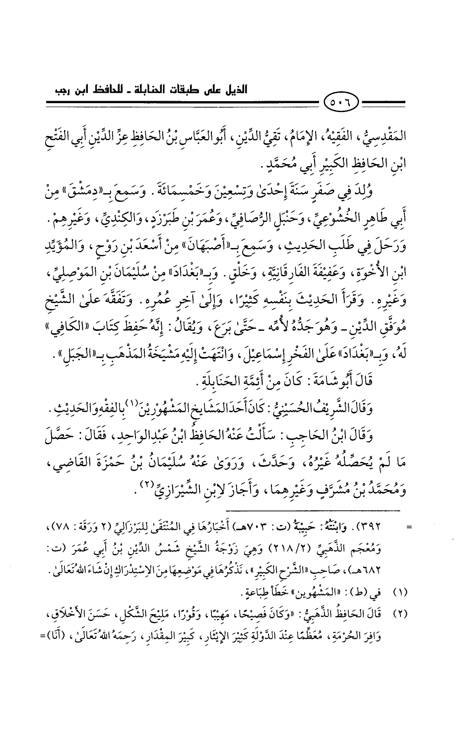 قَالَ أَبُو شامة. كَانَ من أئمة الحنابلة.
