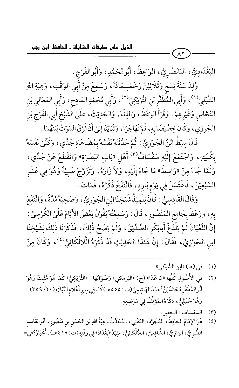 البغدادي، البابصري، الواعظ، أَبُو مُحَمَّد، وأبو الفرج ... ولد سنة تسع وثلاثين وخمسمائة.