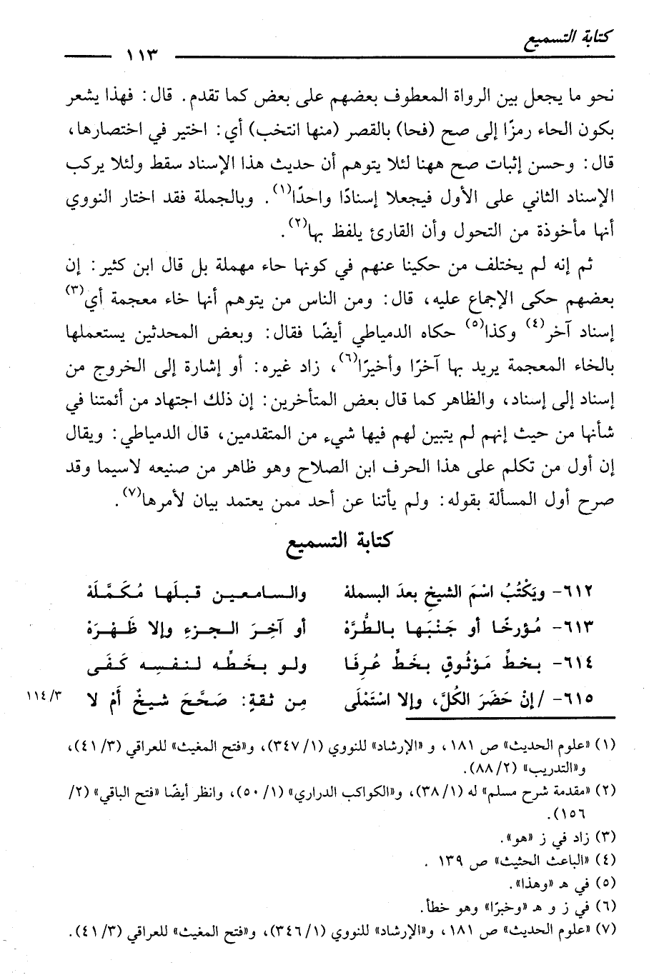 (612) وَيَكْتُبُ اسْمَ الشَّيْخِ بَعْدَ الْبَسْمَلَهْ ... وَالسَّامِعِينَ قَبْلَهَا مُكَمَّلَهْ