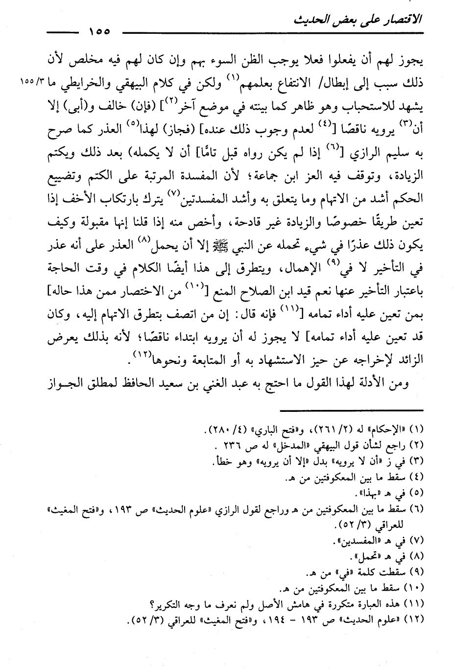 نَعَمْ قَيَّدَ ابْنُ الصَّلَاحِ الْمَنْعَ مِنَ الِاخْتِصَارِ مِمَّنْ هَذَا حَالُهُ بِمَنْ تَعَيَّنَ عَلَيْهِ أَدَاءُ تَمَامِهِ فَإِنَّهُ قَالَ: إِنَّ مَنِ اتَّصَفَ بِتَطَرُّقِ الِاتِّهَامِ إِلَيْهِ وَكَانَ قَدْ تَعَيَّنَ عَلَيْهِ أَدَاءُ تَمَامِهِ لَا يَجُوزُ لَهُ أَنْ يَرْوِيَهُ ابْتِدَاءً نَاقِصًا ; لِأَنَّهُ بِذَلِكَ يُعَرِّضُ الزَّائِدَ لِإِخْرَاجِهِ عَنْ حَيِّزِ الِاسْتِشْهَادِ بِهِ أَوِ الْمُتَابَعَةِ وَنَحْوِهَا.
