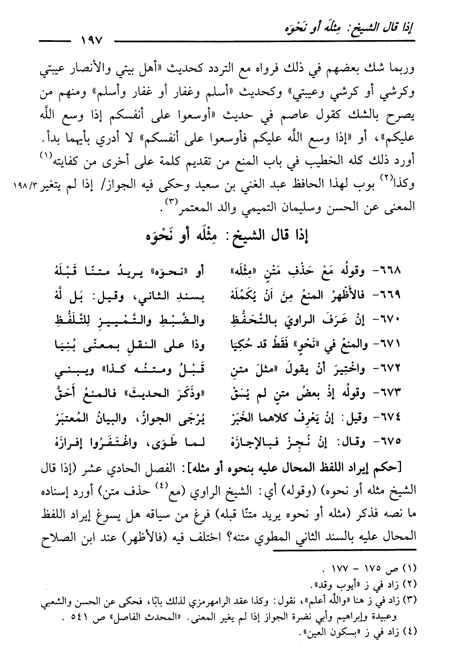 (668) وَقَوْلُهُ مِعْ حَذْفِ مَتْنٍ مِثْلَهُ ... أَوْ نَحْوَهُ يُرِيدُ مَتْنًا قَبْلَهُ