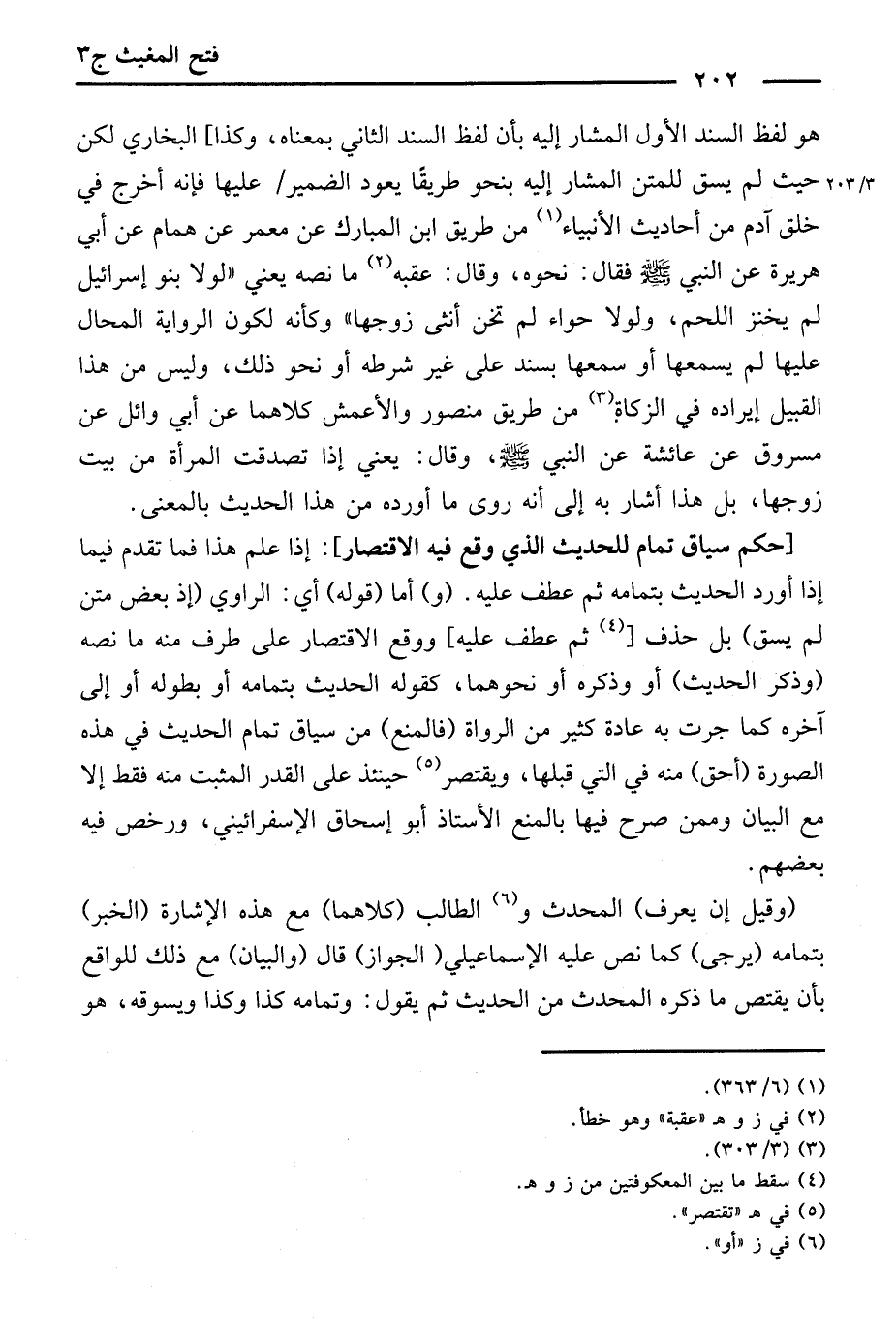 [حُكْمُ سِيَاقِ تَمَامٍ لِلْحَدِيثِ الَّذِي وَقَعَ فِيهِ الِاقْتِصَارُ] إِذَا عُلِمَ هَذَا فَمَا تَقَدَّمَ فِيمَا إِذَا أَوْرَدَ الْحَدِيثَ بِتَمَامِهِ ثُمَّ عَطَفَ عَلَيْهِ، (وَ) أَمَّا (قَوْلُهُ) أَيِ الرَّاوِي (إِذْ بَعْضُ مَتْنٍ لَمْ يَسُقْ) بَلْ حَذَفَ، ثُمَّ عَطَفَ عَلَيْهِ، وَوَقَعَ الِاقْتِصَارُ عَلَى طَرَفٍ مِنْهُ مَا نَصُّهُ.