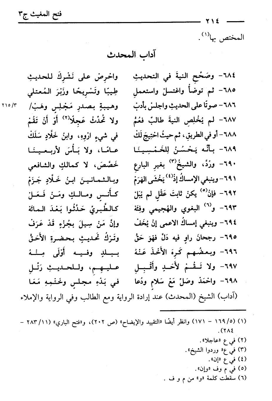 (684) وَصَحِّحِ النِّيَّةَ فِي التَّحْدِيثِ ... وَاحْرِصْ عَلَى نَشْرِكَ لِلْحَدِيثِ