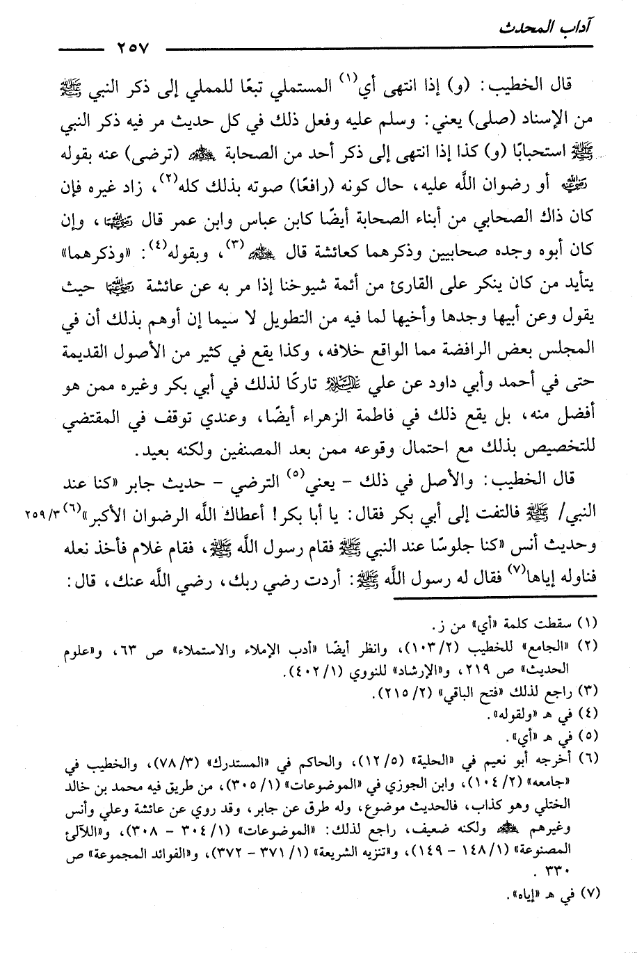 قَالَ الْخَطِيبُ: (وَ) إِذَا انْتَهَى. أَيِ الْمُسْتَمْلِي تَبَعًا لِلْمُمْلِي إِلَى ذِكْرِ النَّبِيِّ صَلَّى اللَّهُ عَلَيْهِ وَسَلَّمَ مِنَ الْإِسْنَادِ (صَلَّى) يَعْنِي وَسَلَّمَ عَلَيْهِ، وَفَعَلَ ذَلِكَ فِي كُلِّ حَدِيثٍ مَرَّ فِيهِ ذِكْرُ النَّبِيِّ صَلَّى اللَّهُ عَلَيْهِ وَسَلَّمَ اسْتِحْبَابًا.