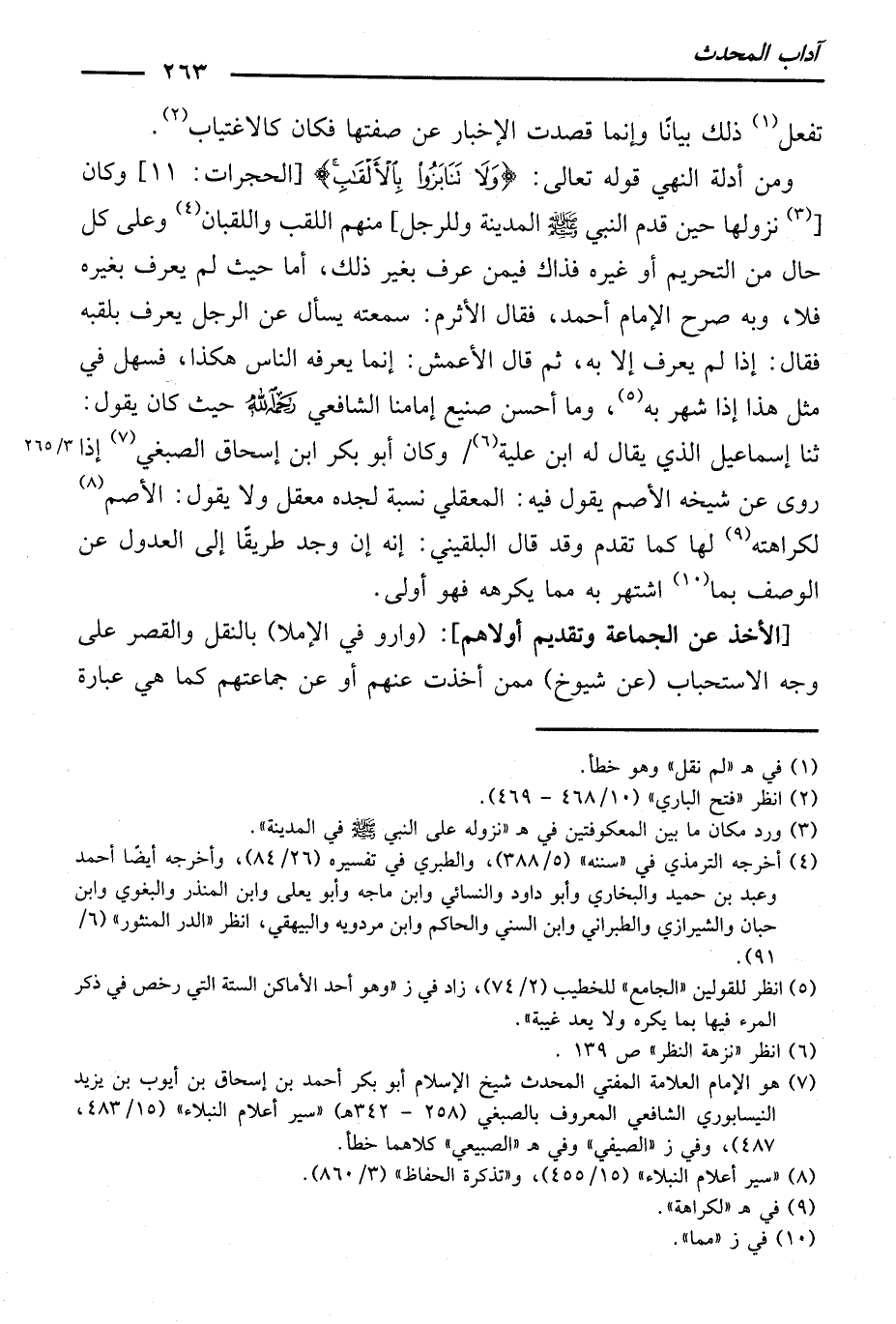 وَبِهِ صَرَّحَ الْإِمَامُ أَحْمَدُ، فَقَالَ الْأَثْرَمُ: سَمِعْتُهُ يُسْأَلُ عَنِ الرَّجُلِ يُعْرَفُ بِلَقَبِهِ فَقَالَ: إِذَا لَمْ يُعْرَفْ إِلَّا بِهِ. ثُمَّ قَالَ: الْأَعْمَشُ إِنَّمَا يَعْرِفُهُ النَّاسُ هَكَذَا. فَسَهَّلَ فِي مِثْلِ هَذَا إِذَا شُهِرَ بِهِ. وَمَا أَحْسَنَ صَنِيعَ إِمَامِنَا الشَّافِعِيِّ رَحِمَهُ اللَّهُ حَيْثُ كَانَ يَقُولُ: ثَنَا إِسْمَاعِيلُ الَّذِي يُقَالُ لَهُ: ابْنُ عُلَيَّةَ.