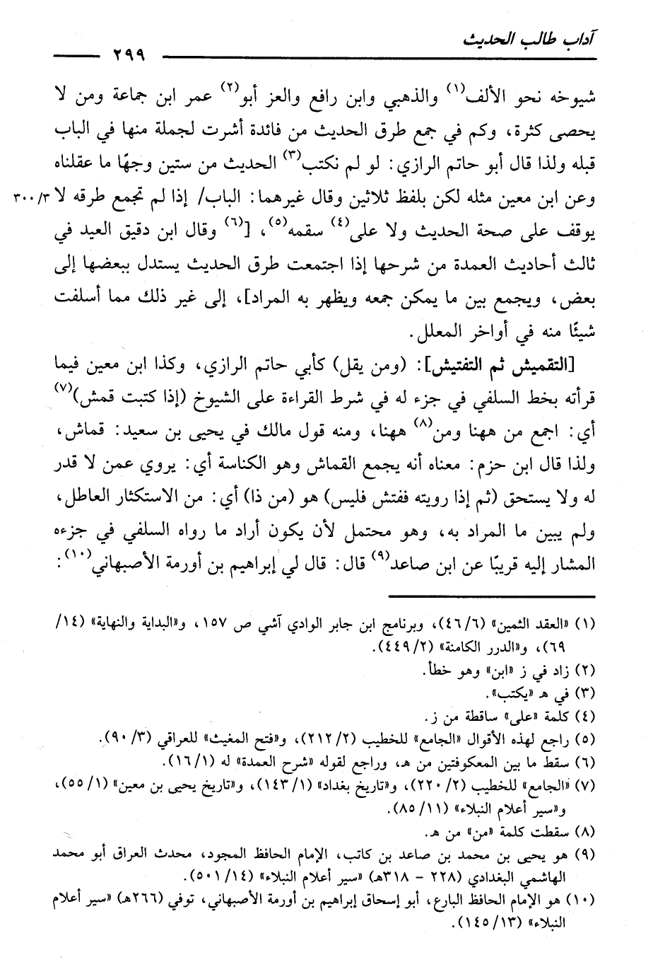 [التقميش ثم التفتيش] (وَمَنْ يَقُلْ) كَأَبِي حَاتِمٍ الرَّازِيِّ، وَكَذَا ابْنُ مَعِينٍ، فِيمَا قَرَأْتُهُ بِخَطِ السِّلَفِيِّ فِي جُزْءٍ لَهُ فِي شَرْطِ الْقِرَاءَةِ عَلَى الشُّيُوخِ: (إِذَا كَتَبْتَ قَمِّشْ) ; أَيِ: اجْمَعْ مِنْ هَاهُنَا وَمِنْ هَاهُنَا، وَمِنْهُ قَوْلُ مَالِكٍ فِي يَحْيَى بْنِ سَعِيدٍ: قَمَّاشٌ، وَلِذَا قَالَ ابْنُ حَزْمٍ: مَعْنَاهُ أَنَّهُ يَجْمَعُ الْقُمَاشَ، وَهُوَ الْكُنَاسَةَ ; أَيْ: يَرْوِي عَمَّنْ لَا قَدْرَ لَهُ وَلَا يَسْتَحِقُّ.