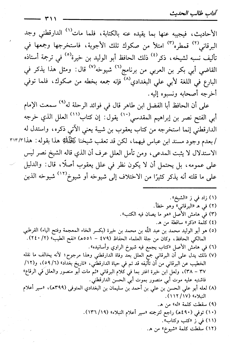 لَكِنْ قَدْ تَعَقَّبَ شَيْخُنَا رَحِمَهُ اللَّهُ هَذَا بِقَوْلِهِ: هَذَا الِاسْتِدْلَالُ لَا يُثْبِتُ الْمُدَّعَى، وَمَنْ تَأَمَّلَ (الْعِلَلَ) عَرَفَ أَنَّ الَّذِي قَالَهُ الشَّيْخُ نَصْرٌ لَيْسَ عَلَى عُمُومِهِ، بَلْ يُحْتَمَلُ أَنْ لَا يَكُونَ نَظَرَ فِي عِلَلِ يَعْقُوبَ أَصْلًا، قَالَ: وَالدَّلِيلُ عَلَى مَا قُلْتُهُ أَنَّهُ يَذْكُرُ كَثِيرًا مِنَ الِاخْتِلَافِ إِلَى شُيُوخِهِ أَوْ شُيُوخِ شُيُوخِهِ الَّذِينَ