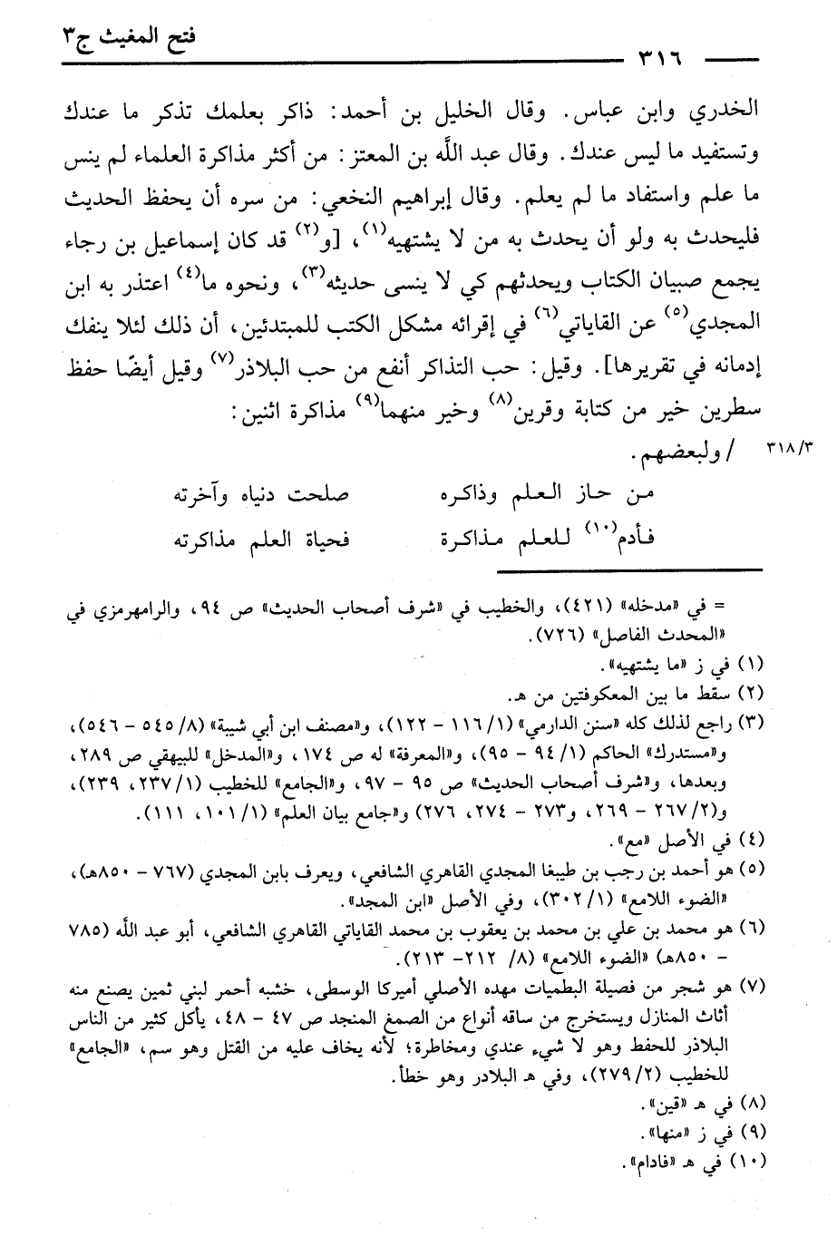 فَأَدِمْ لِلْعِلْمِ مُذَاكَرَةً ... فَحَيَاةُ الْعِلْمِ مُذَاكَرَتُهْ