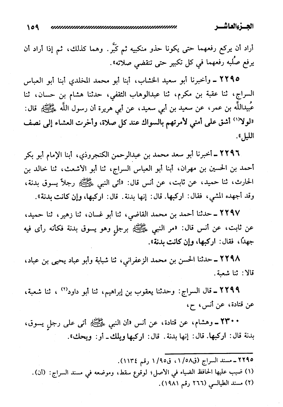 2299- قَالَ السَّرَّاجُ: وَحَدَّثَنَا يَعْقُوبُ بْنُ إِبْرَاهِيمَ، ثنا أَبُو دَاوُدَ، ثنا شُعْبَةُ، عَنْ قَتَادَةَ، عَنْ أَنَسٍ، ح،