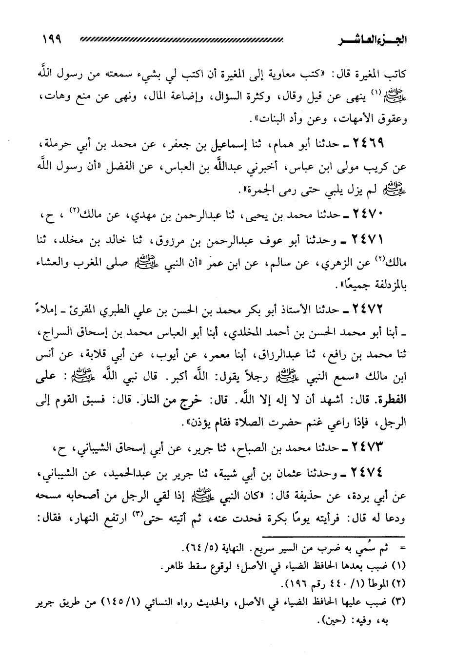 2473- حَدَّثَنَا مُحَمَّدُ بْنُ الصَّبَّاحِ، ثنا جَرِيرٌ، عَنْ أَبِي إِسْحَاقَ الشَّيْبَانِيِّ، ح،