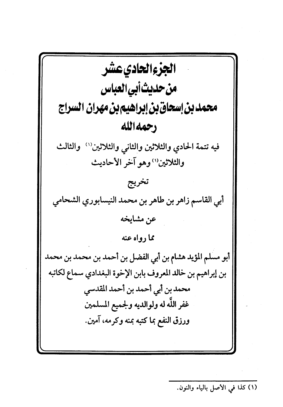 الْجُزْءُ الْحَادِي عَشَرَ مِنْ حَدِيثِ أَبِي الْعَبَّاسِ محمد بن إسحاق بن إبراهيم بن مهران السَّرَّاجِ رَحِمَهُ اللهُ