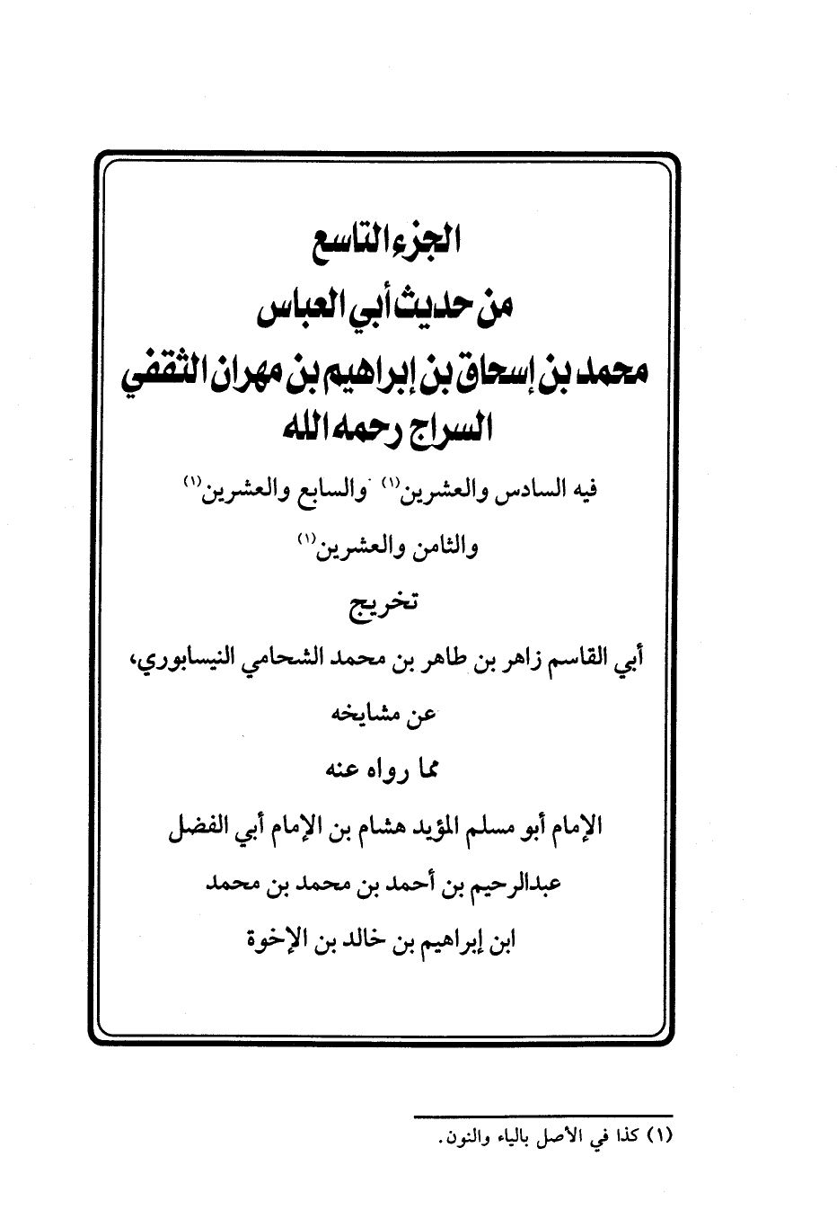 الْجُزْءُ التَّاسِعُ مِنْ حَدِيثِ أَبِي الْعَبَّاسِ مُحَمَّدِ بن إسحاق بن إبراهيم بن مهران الثقفي السَّرَّاجِ رَحِمَهُ الله