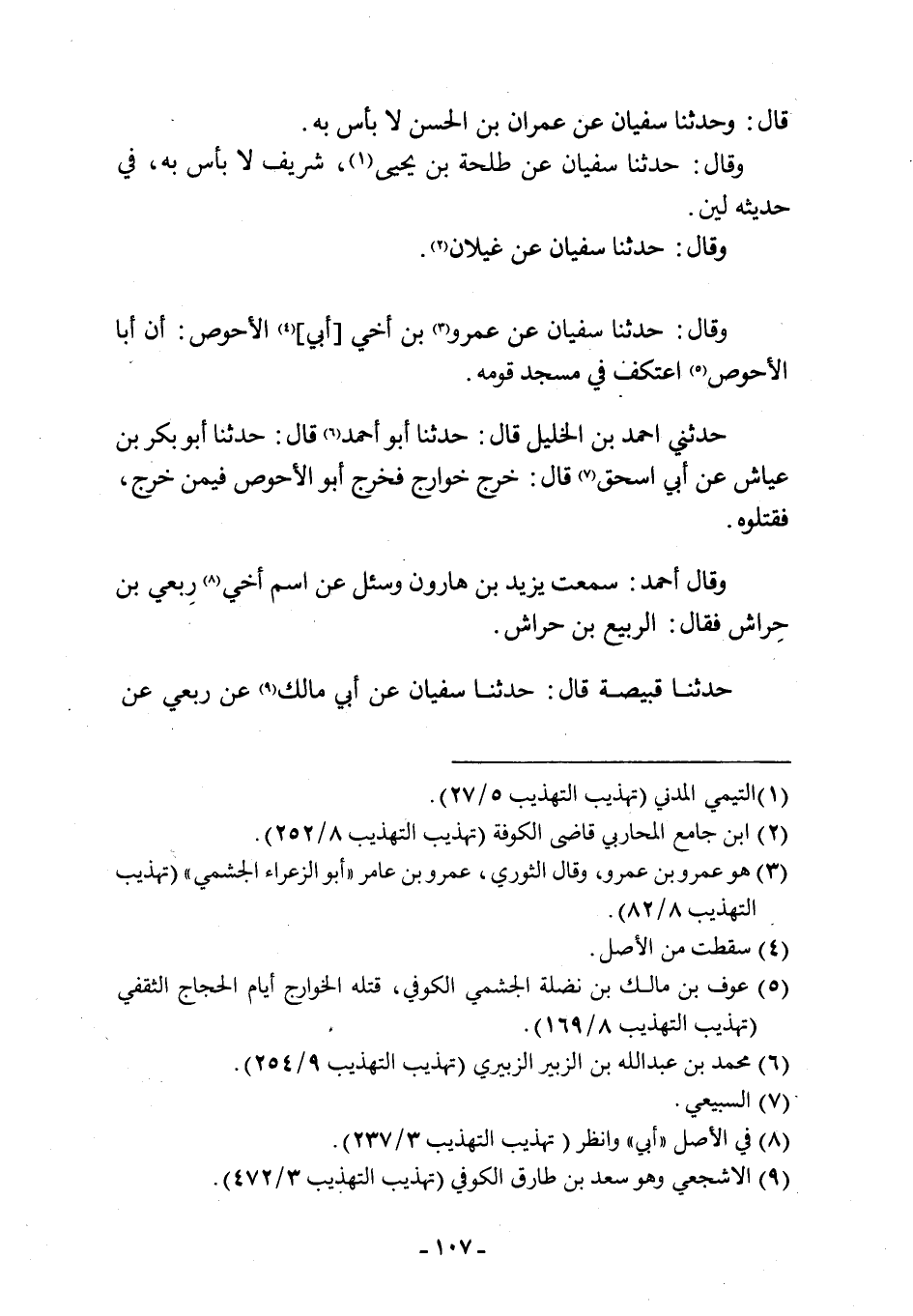 وَقَالَ: حَدَّثَنَا سُفْيَانُ عَنْ عَمْرِو [3] بْنِ أَخِي [أَبِي] [4] الْأَحْوَصِ: