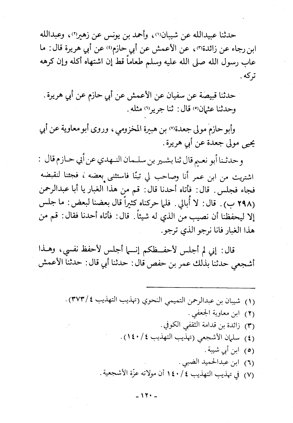 حَدَّثَنَا عُبَيْدُ اللَّهِ عَنْ شَيْبَانَ [1] ، وَأَحْمَدَ بْنِ يُونُسَ عَنْ زُهَيْرٍ [2] وَعَبْدِ اللَّهِ بْنِ رَجَاءٍ عَنْ زَائِدَةَ [3] ، عَنِ الْأَعْمَشِ عَنْ أَبِي حَازِمٍ [4] عَنْ أَبِي هُرَيْرَةَ قَالَ: مَا عَابَ رَسُولُ اللَّهِ صَلَّى اللَّهُ عَلَيْهِ وَسَلَّمَ طَعَامًا قَطُّ إِنِ اشْتَهَاهُ أَكَلَهُ وَإِنْ كَرِهَهُ تَرَكَهُ.