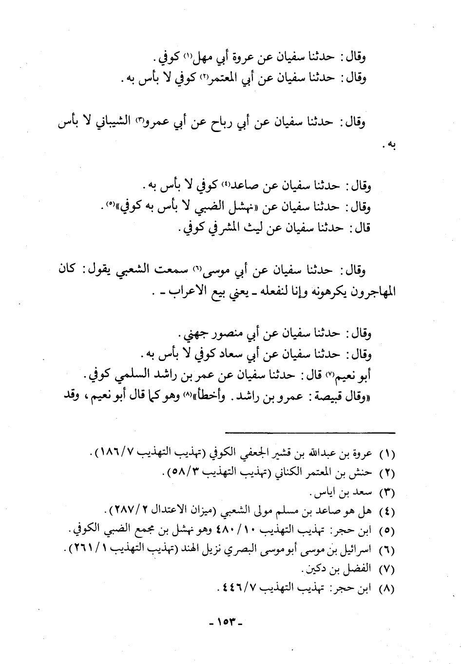 وَقَالَ: حَدَّثَنَا سُفْيَانُ عَنْ «نَهْشَلٍ الضَّبِّيِّ لَا بَأْسَ بِهِ كُوفِيٌّ» [5] .
