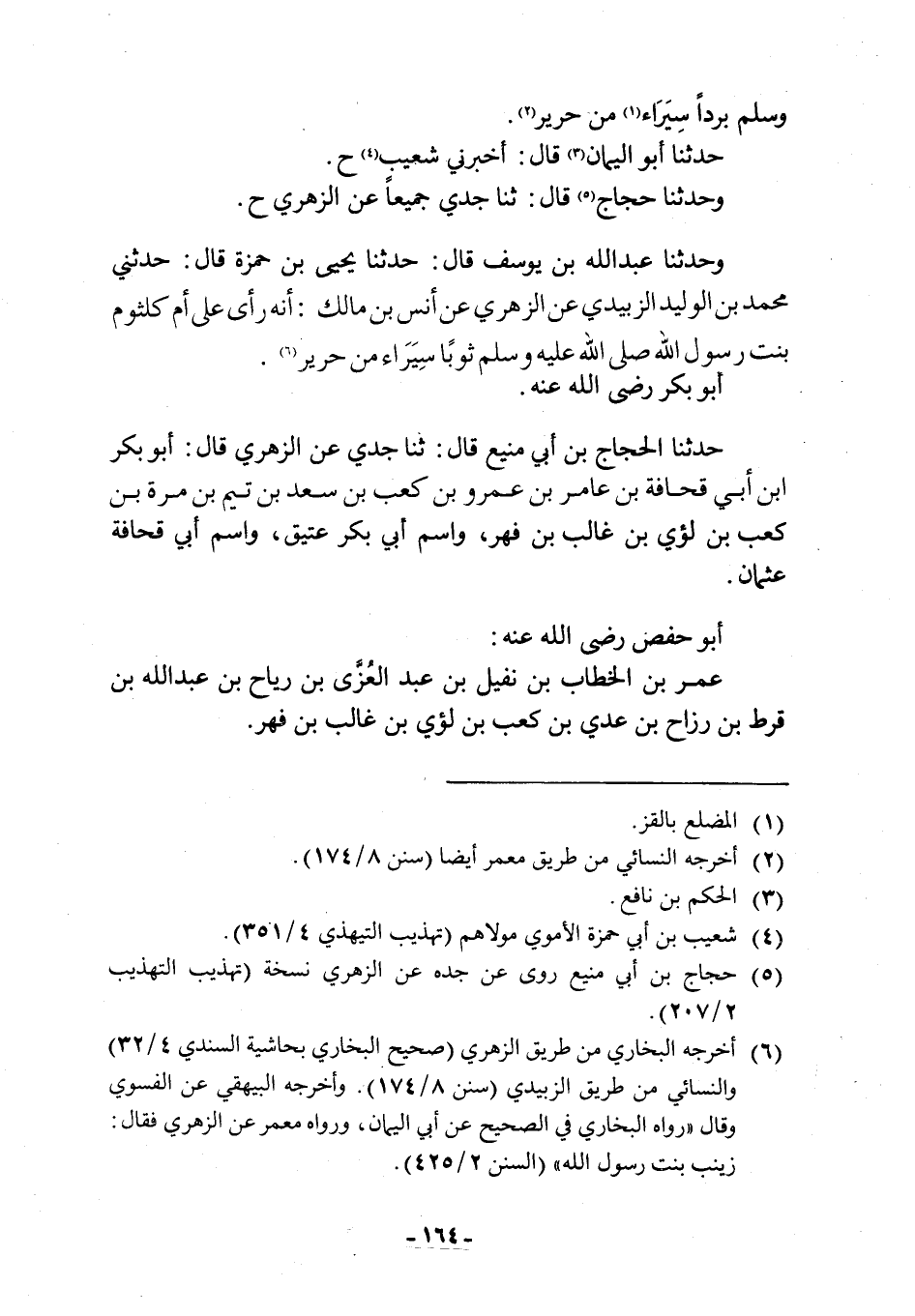 وَحَدَّثَنَا عَبْدُ اللَّهِ بْنُ يُوسُفَ قَالَ: حدثنا يحيى بن حمزة قال: حدثني مُحَمَّدُ بْنُ الْوَلِيدِ عَنِ الزُّهْرِيِّ عَنْ أَنَسِ بْنِ مَالِكٍ: أَنَّهُ رَأَى عَلَى أُمِّ كُلْثُومٍ بنت رسول الله صلى الله عليه وسلم ثَوْبًا سِيَرَاءَ مِنْ حَرِيرٍ [6] .