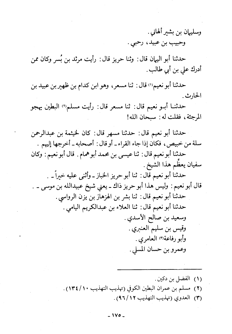 حدثنا أبو نعيم قال: ثنا مسعر قال: رأيت مسلم [2] البطين يهجو المرجئة، فقلت له: سبحان الله! حَدَّثَنَا أَبُو نُعَيْمٍ قَالَ: حَدَّثَنَا مُسْهِرٌ قَالَ: كَانَ لِخَيْثَمَةَ بْنِ عَبْدِ الرَّحْمَنِ سَلَّةٌ مِنْ خَبِيصٍ، فَكَانَ إِذَا جَاءَ الْقُرَّاءُ- أَوْ قَالَ: أَصْحَابُهُ- أَخْرَجَهَا إِلَيْهِمْ.