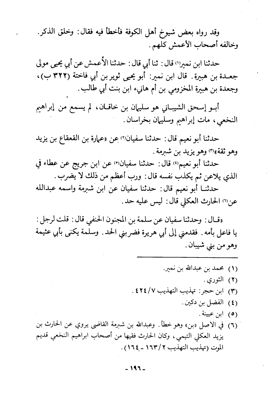 [6] في الأصل «بن» وهو خطأ. وعبد الله بن شبرمة القاضي يروي عن الحارث بن يزيد العكلي التيمي، وكان الحارث فقيها من أصحاب إبراهيم النخعي قديم الموت (تهذيب التهذيب 2/ 163- 164) .