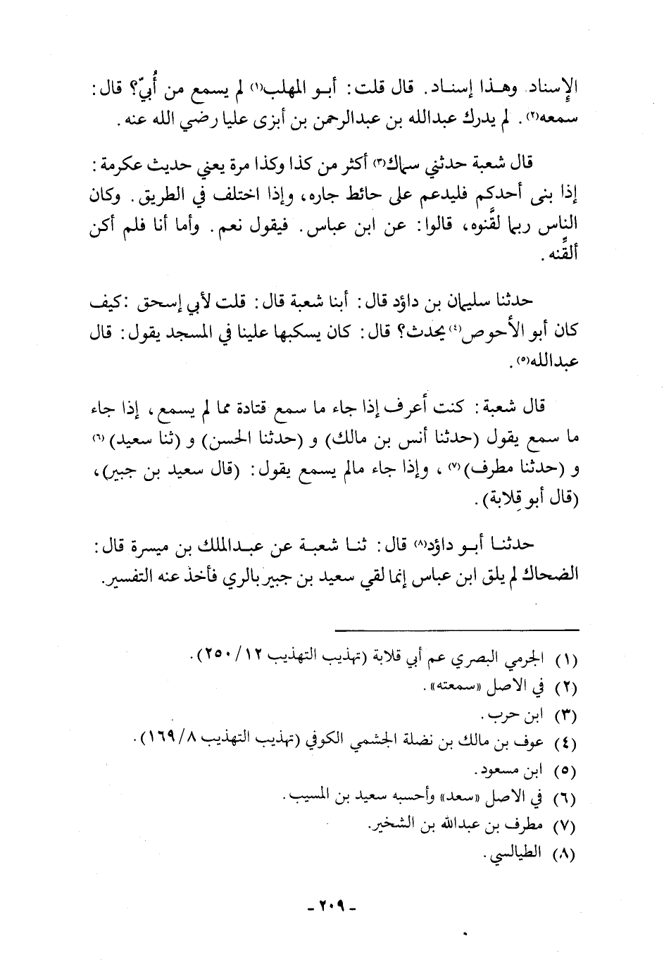 حَدَّثَنَا أَبُو دَاوُدَ [8] قَالَ: ثنا شُعْبَةُ عَنْ عَبْدِ الْمَلِكِ بْنِ مَيْسَرَةَ قَالَ: