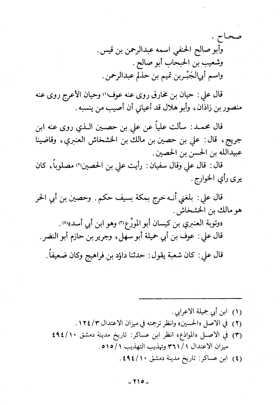 قَالَ عَلِيٌّ: حَيَّانُ بْنُ مُخَارِقٍ رَوَى عَنْهُ عَوْفٌ [1] ، وَحَيَّانُ الْأَعْرَجُ رَوَى عَنْهُ مَنْصُورُ بْنُ زَاذَانَ، وَأَبُو هِلَالٍ قَدْ أَعْيَانِي أَنْ أَصُيِبَ مَنْ يَنْسُبُهُ.