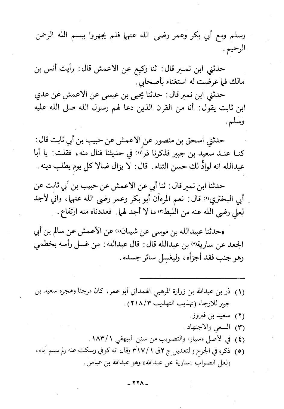 حَدَّثَنَا ابْنُ نُمَيْرٍ قَالَ: ثنا أَبِي عَنِ الْأَعْمَشِ عَنْ حَبِيبِ بْنِ أَبِي ثَابِتٍ عَنْ أَبِي الْبَخْتَرِيِّ [2] قَالَ: نَعَمِ الْمَرءانِ أَبُو بَكْرٍ وَعُمَرُ رَضِيَ اللَّهُ عَنْهُمَا، وَإِنِّي لَأَجِدُ لِعَلِيٍّ رَضِيَ اللَّهُ عَنْهُ مِنَ اللَّبْطِ [3] مَا لَا أَجِدُ لَهُمَا. فَعَدَدْنَاهُ مِنْهُ ارْتِفَاعٌ.