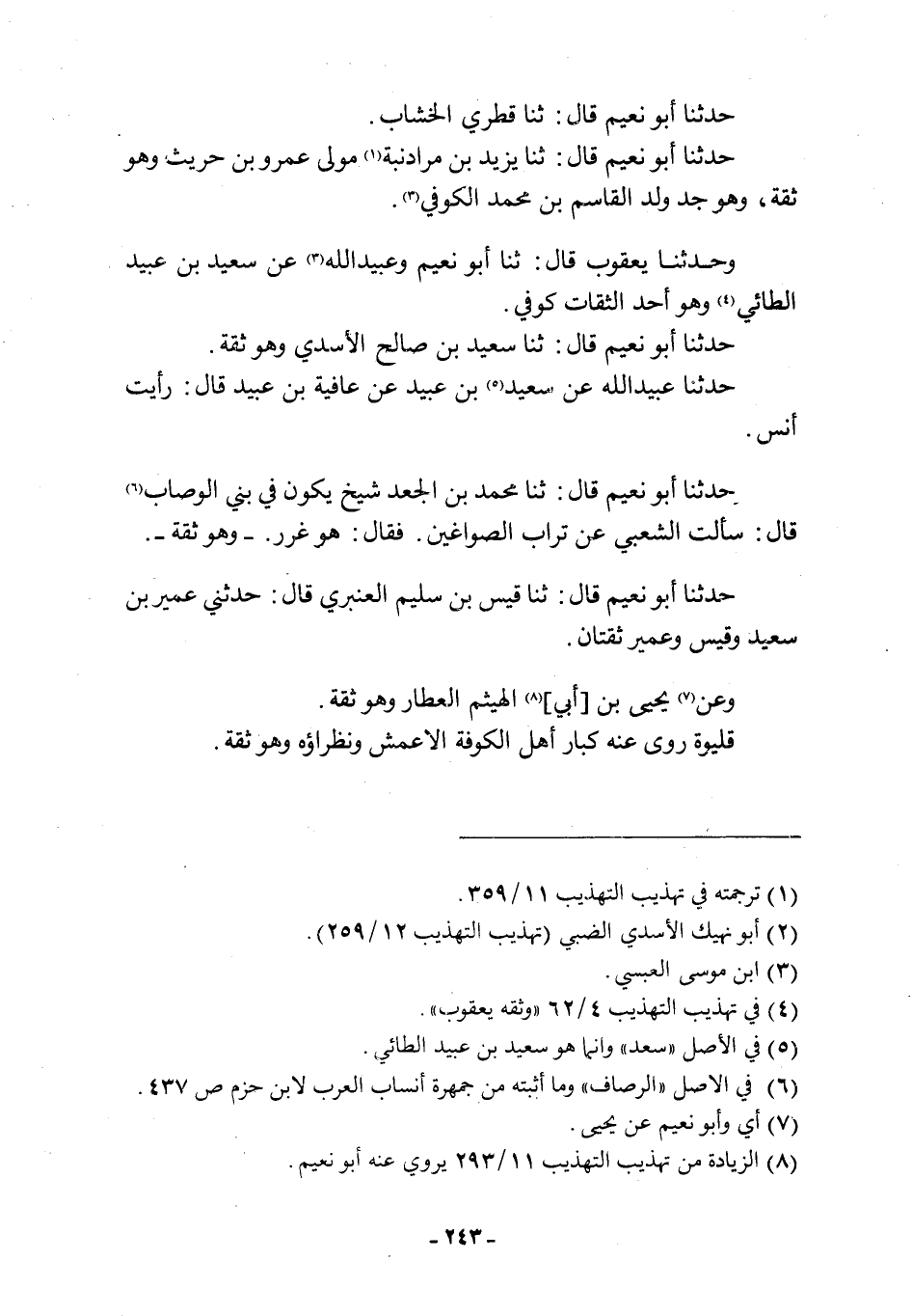 وَحَدَّثَنَا يَعْقُوبُ قَالَ: ثنا أَبُو نُعَيْمٍ وَعُبَيْدُ اللَّهِ [3] عَنْ سَعِيدِ بْنِ عُبَيْدٍ الطَّائِيِّ [4] وَهُوَ أَحَدُ الثِّقَاتِ كُوفِيٌّ.