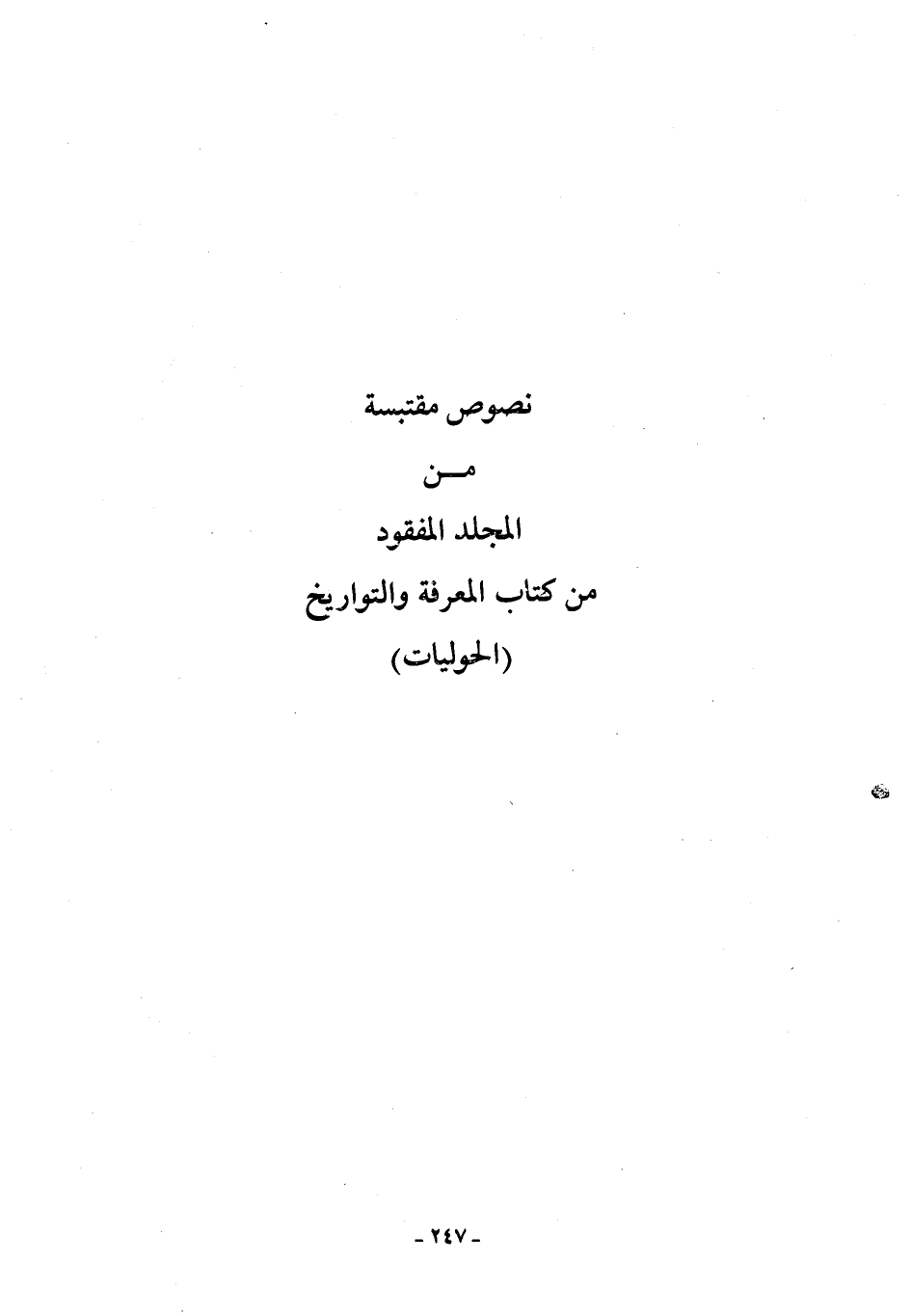 نصوص مقتبسة من المجلد المفقود من كتاب المعرفة والتاريخ (الحوليات)