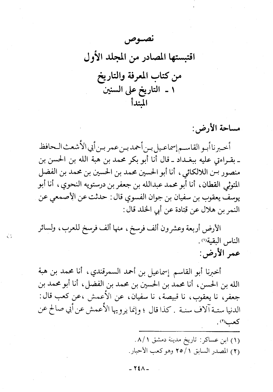نصوص اقتبستها المصادر من المجلد الأول من كتاب المعرفة والتاريخ