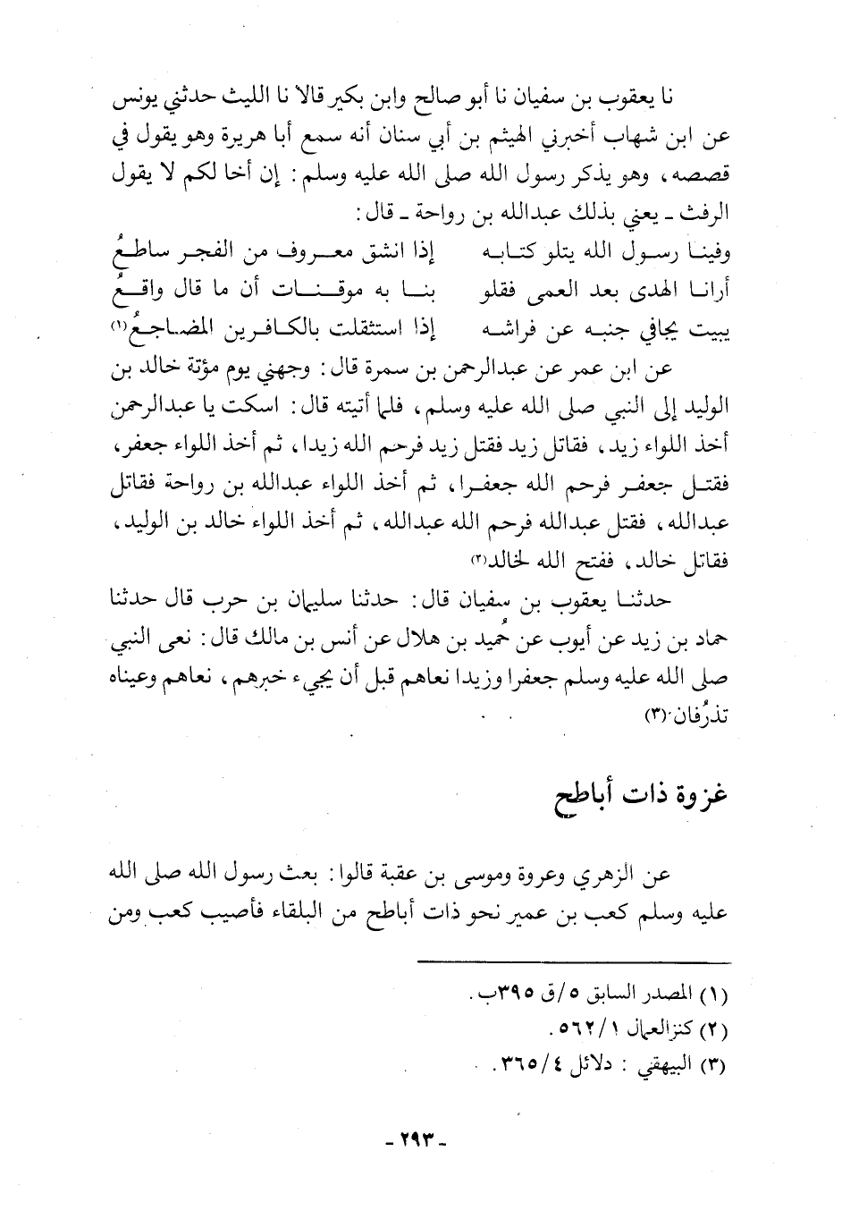أخبرنا أبو محمد عبد الكريم بن حمزة السلمي، نا أبو بكر أحمد بن عن بن ثابت الحافظ ح. وأخبرنا أبو القاسم بن السمرقندي، أنا أبو بكر بن اللالكائي قالا أنا أبو الحسين بن الفضل، أنا عبد الله بن جعفر، نا يعقوب، نا إبراهيم بن المنذر، نا ابن فليح، عن موسى بن عقبة عن ابن شهاب قال: