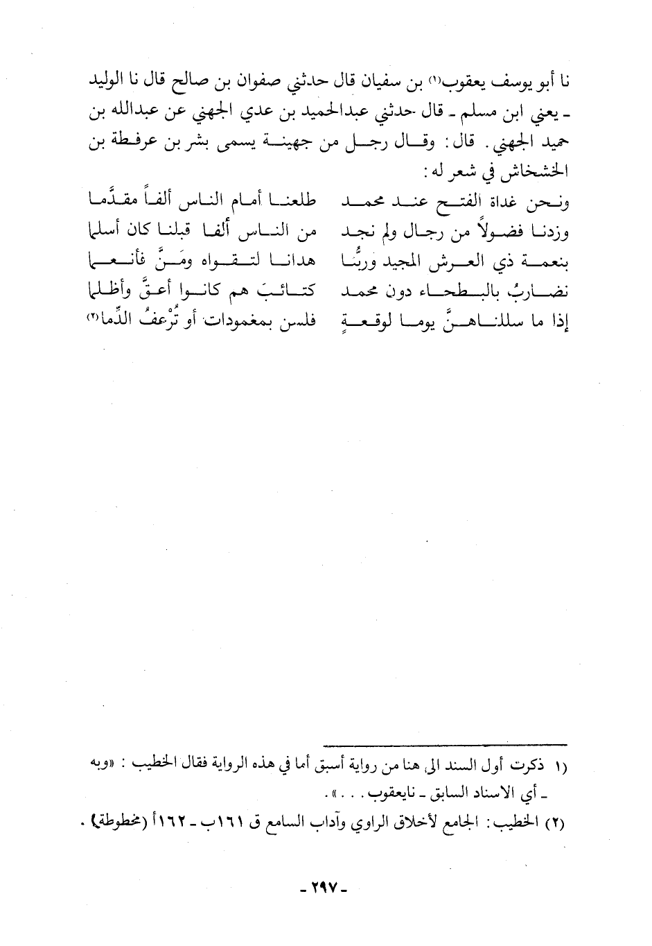 [1] ابن عساكر: تاريخ مدينة دمشق 1/ 495.