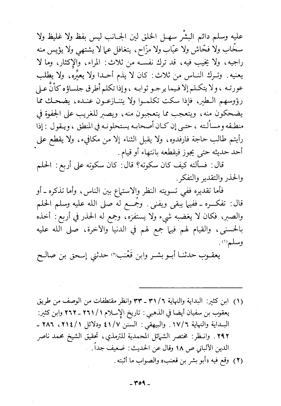 قال الذيال: فلقد رأيت حنظلة يؤتى بالإنسان الوارم وجهه، فيتفل على يديه ويقول: بسم الله. ويضع يده على رأسه موضع كف رسول الله صلى الله عليه وسلم فيمسحه ثم يمسح موضع الورم فيذهب الورم. وكذا رواه يعقوب بن سفيان [2] . روى أبو موسى [3] من «تاريخ» يعقوب بن سفيان من طريق صَفْوَانُ بْنُ عَمْرٍو عَنْ عَبْدِ الرَّحْمَنِ بْنِ أبي عوف عن عتبة بن عبيد الثمالي رفعه «لا يدخل الجنة قبل سائر أمتي الا إبراهيم وإسماعيل» الحديث [4] .