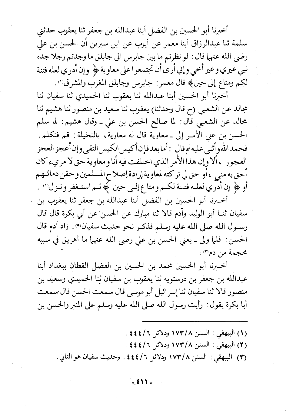 «ان جبريل أمرني أن أكبر» [3] . أخبرنا علي بن أحمد بن إبراهيم نا الحسن بن محمد بن عثمان الفسوي نا يعقوب بن سفيان نا أبو صالح وابن بكير قالا نا اللَّيْثُ بْنُ سَعْدٍ قَالَ حَدَّثَنِي يَزِيدُ بْنُ حبيب عن سعد بن سنان عن أنس بن مالك عن رسول الله صلى الله عليه وسلم قال: «التأنّي [4] من الله والعجلة من الشيطان» . وقال يعقوب نا عبد الله بن محمد المصري نا سليمان بن بلال عن سعد بن سعيد عن الزهري عن رجل من بلي قال: أقبلت أنا وأمي إِلَى رَسُولِ اللَّهِ صَلَّى اللَّهُ عَلَيْهِ وَسَلَّمَ، فجاء أبي فناجاه وكلّمه فكان فيما قال له: