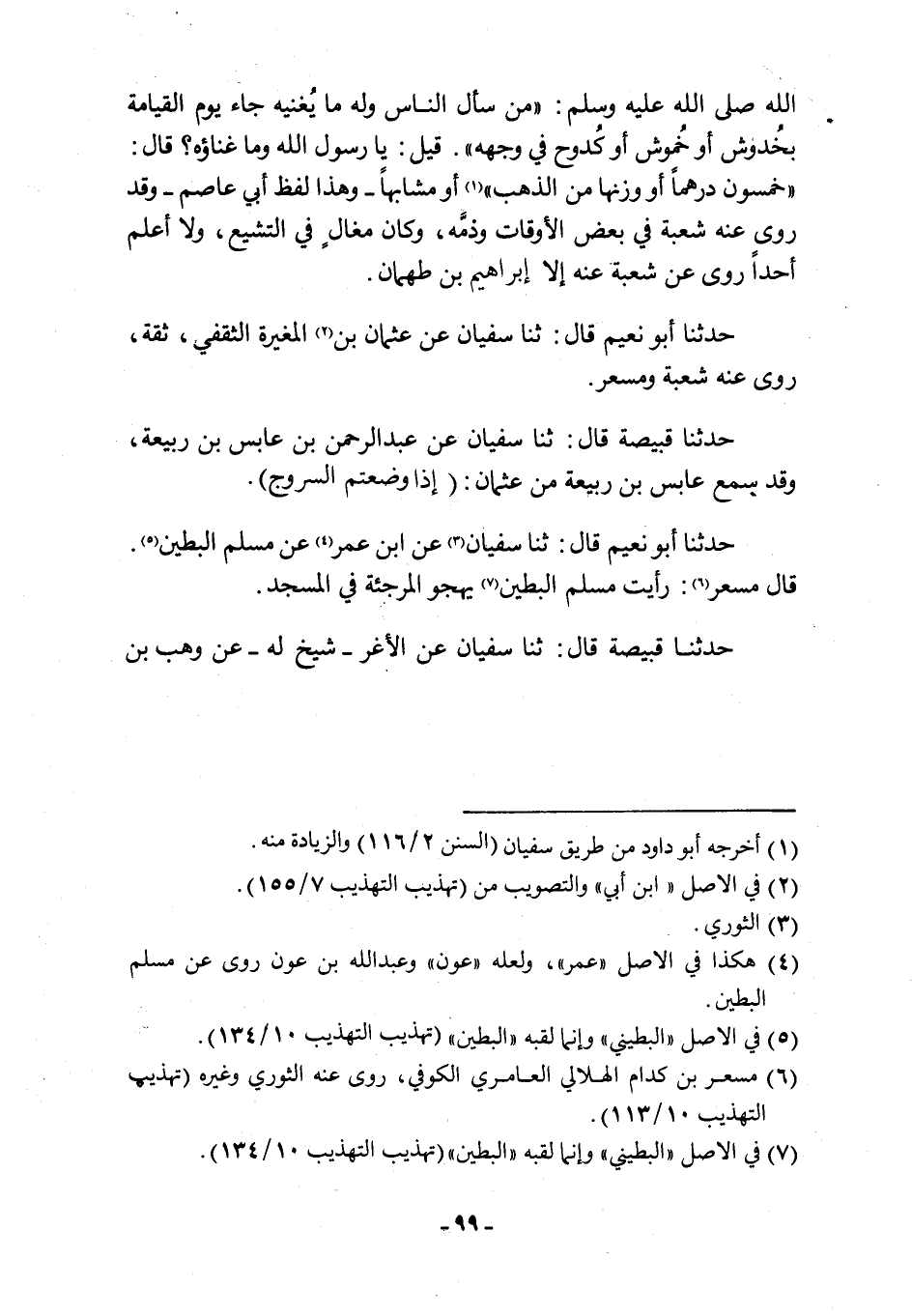 حدثنا أبو نعيم قال: ثنا سفيان [3] عن ابْنِ عُمَرَ [4] عَنْ مُسْلِمٍ الْبَطِينِ [5] . قَالَ مِسْعَرٌ [6] : رَأَيْتُ مُسْلِمَ الْبَطِينَ [7] يَهْجُو الْمُرْجِئَةَ فِي الْمَسْجِدِ.