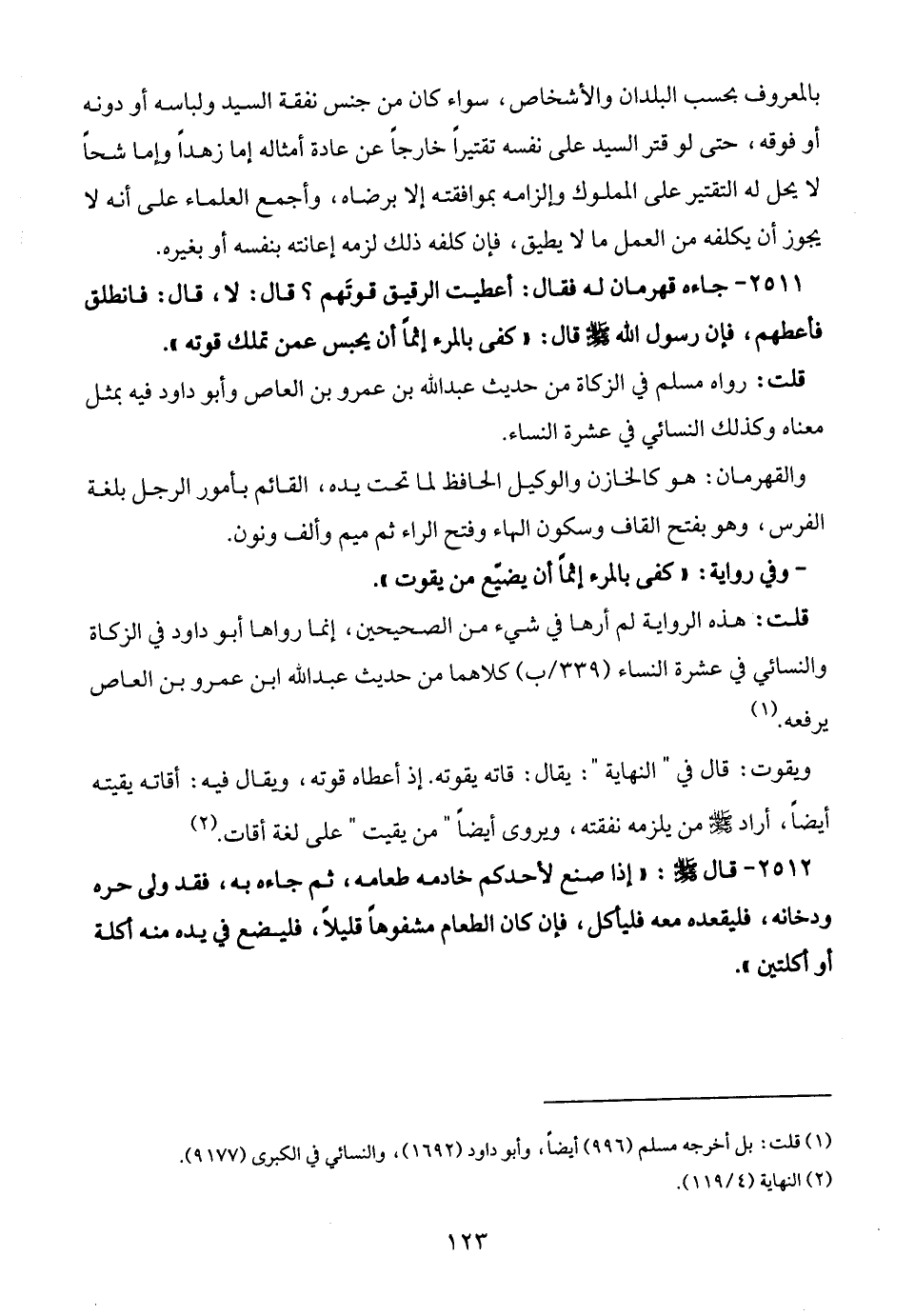 2511 - جاءه قهرمان له فقال: أعطيت الرقيق قوتَهم؟ قال: لا، قال: فانطلق فأعطهم، فإن رسول الله - صلى الله عليه وسلم - قال: "كفى بالمرء إثمًا أن يحبس عمن تملك قوته".