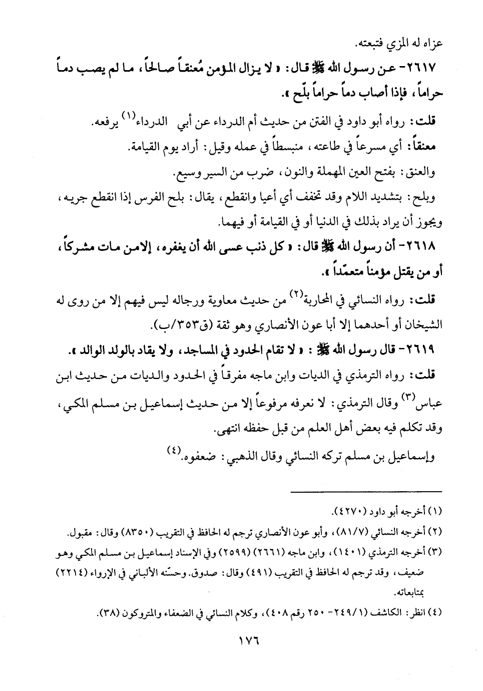 2617 - عن رسول الله - صلى الله عليه وسلم - قال: "لا يزال المؤمن مُعنقًا صالحًا، ما لم يصب دمًا حرامًا، فإذا أصاب دمًا حرامًا بلّح".