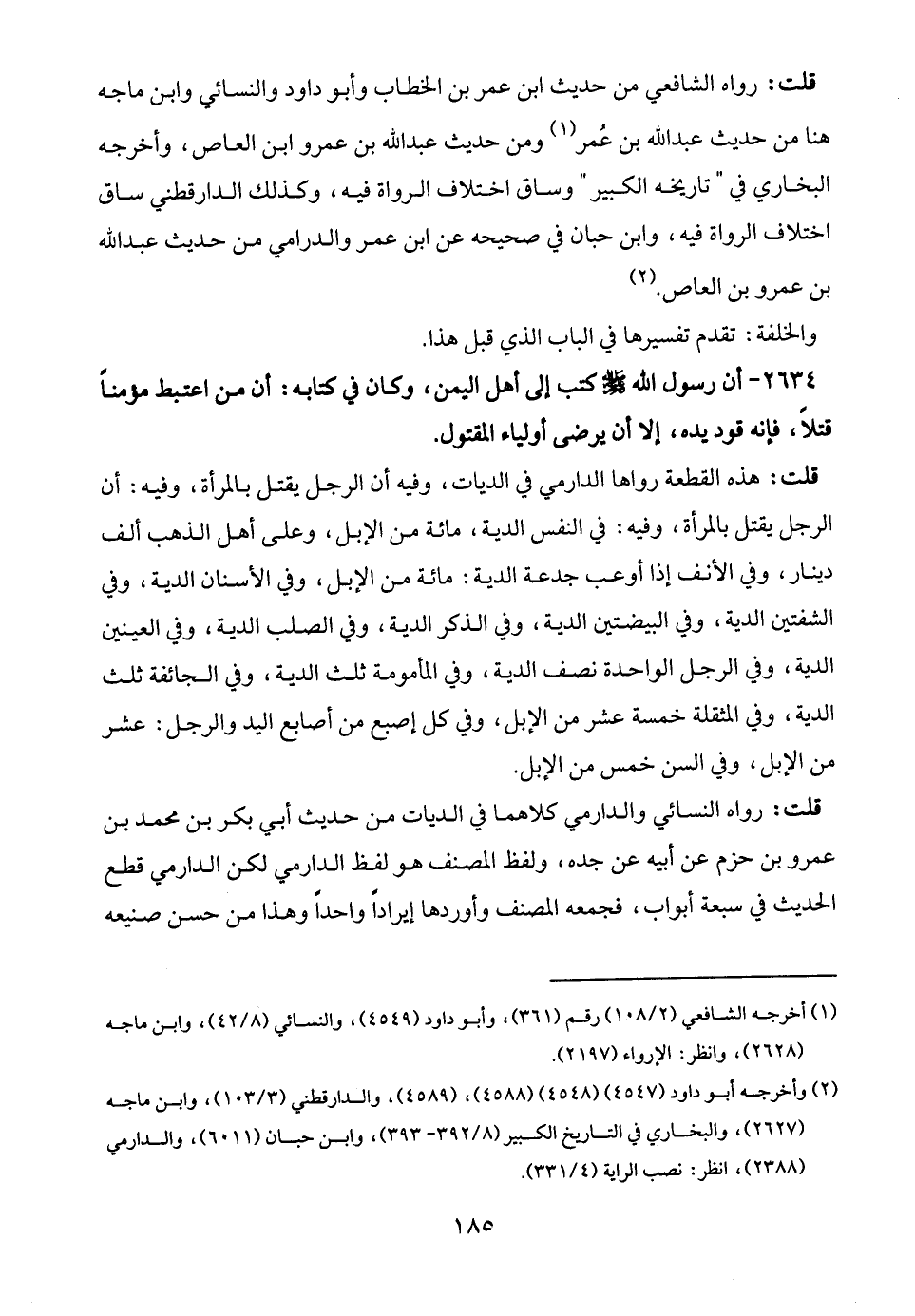 (¬1) أخرجه الشافعي (2/ 108) رقم (361)، وأبو داود (4549)، والنسائي (8/ 42)، وابن ماجه (2628)، وانظر: الإرواء (2197).