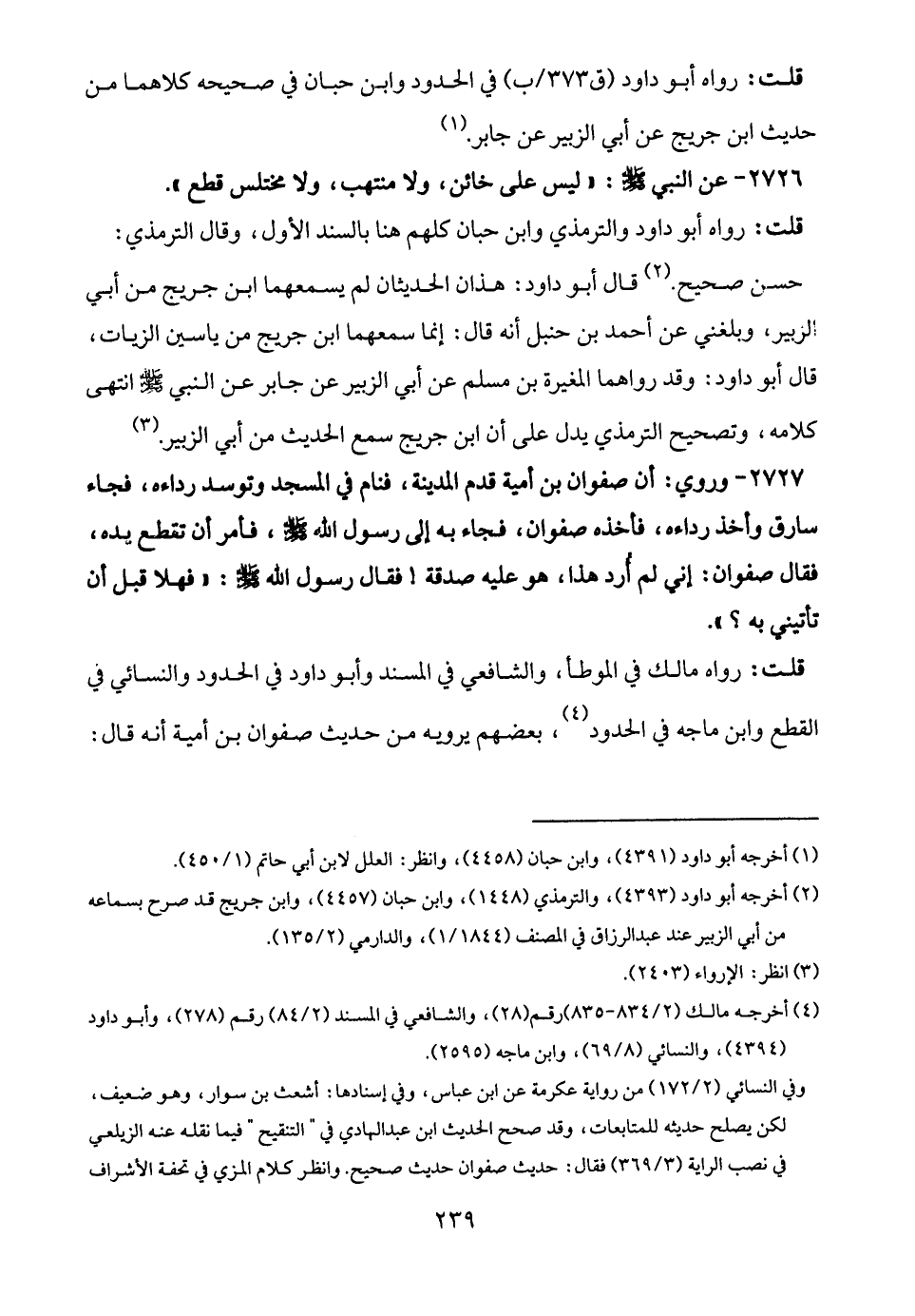 قلت: رواه مالك في الموطأ، والشافعي في المسند وأبو داود في الحدود والنسائي في القطع وابن ماجه في الحدود (¬4)، بعضهم يرويه من حديث صفوان بن أمية أنه قال: